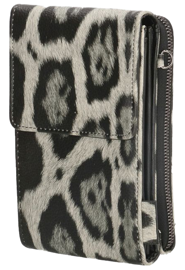 Telefoontasje van Beagles. Het tasje heeft een rits vak met kaartvakjes, de ander kant van het tasje heeft een magnetische sluiting waar de telefoon in kan. Zit een schouder riem bij. Afmeting: 19cm hoog, 12cm lengte, 4cm diep. Materiaal: polyester en imitatie leer.