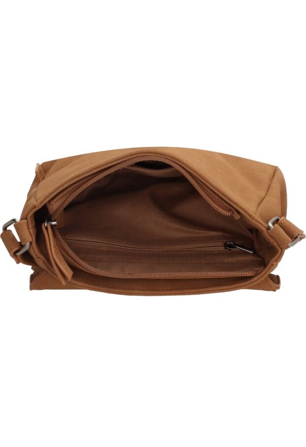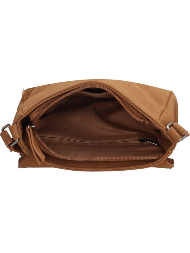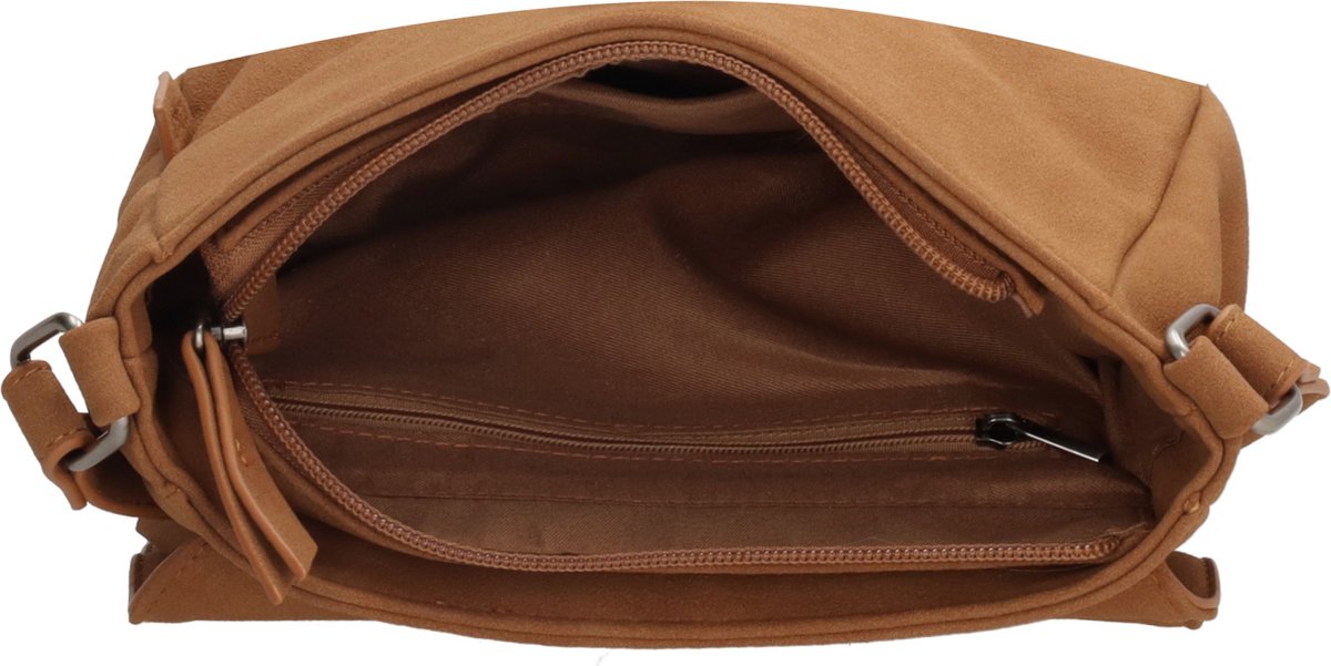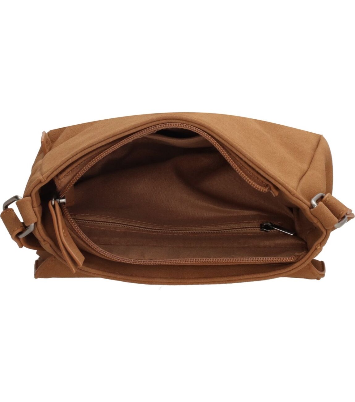 Deze schoudertas heeft een verstelbare schouderband en een ritsvak binnenin. Afmetingen breedte 21 cm. Hoogte 15 cm.