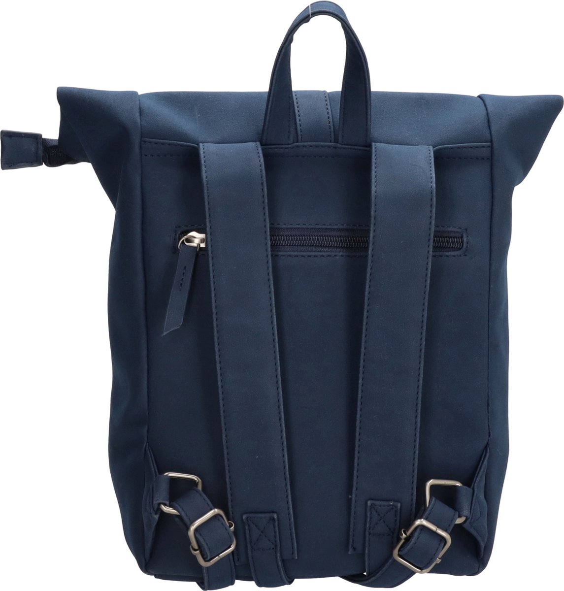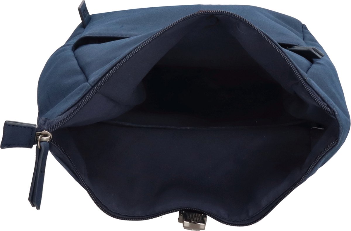 Deze rugzak heeft een ritszak voor en achter. De tas zelf heeft een ritssluiting met een gesp. In deze tas past een 13 inch laptop. Afmeting breedte 35 cm. Hoogte 40 cm.
