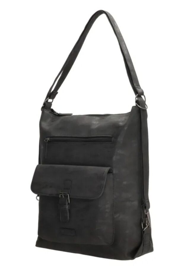 Deze tas van BEAGLES kan zowel als shopper en rugzak gebruikt worden. De tas heeft verschillende vakken welke afsluitbaar zijn met een rits. Het voorste vak sluit met een magneetsluiting. Afmeting: Lengte 38 cm. Breedte 14 cm. Hoogte 40 cm.