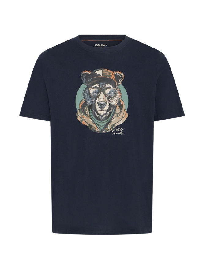 Beregoed! Dit T-shirt in navy van Blend heeft een grote print voorop met een toffe peer.