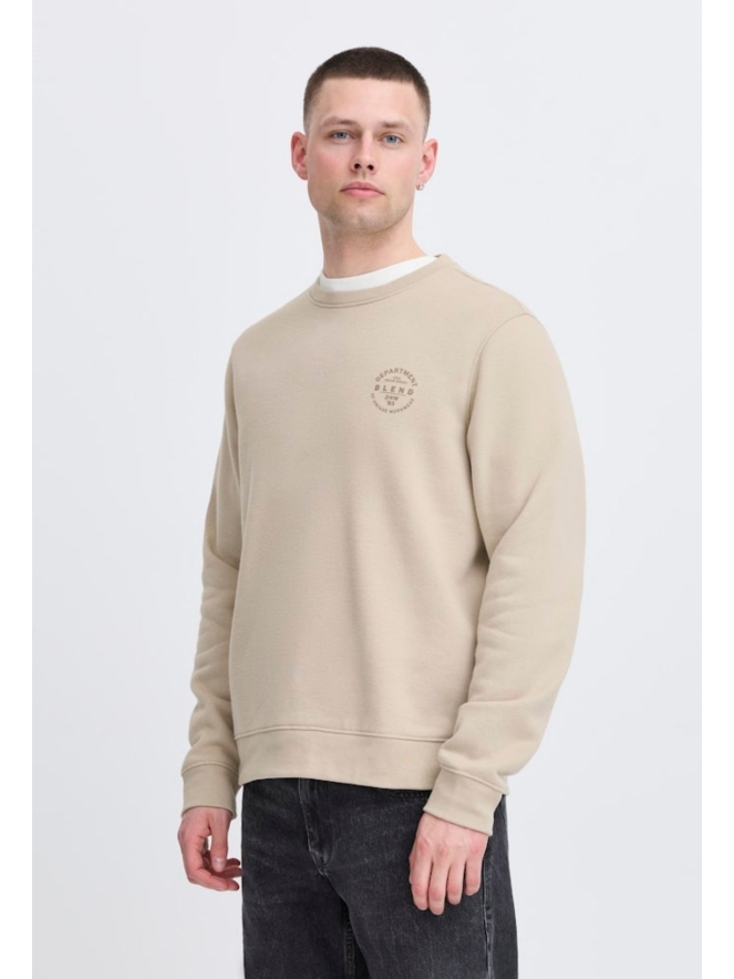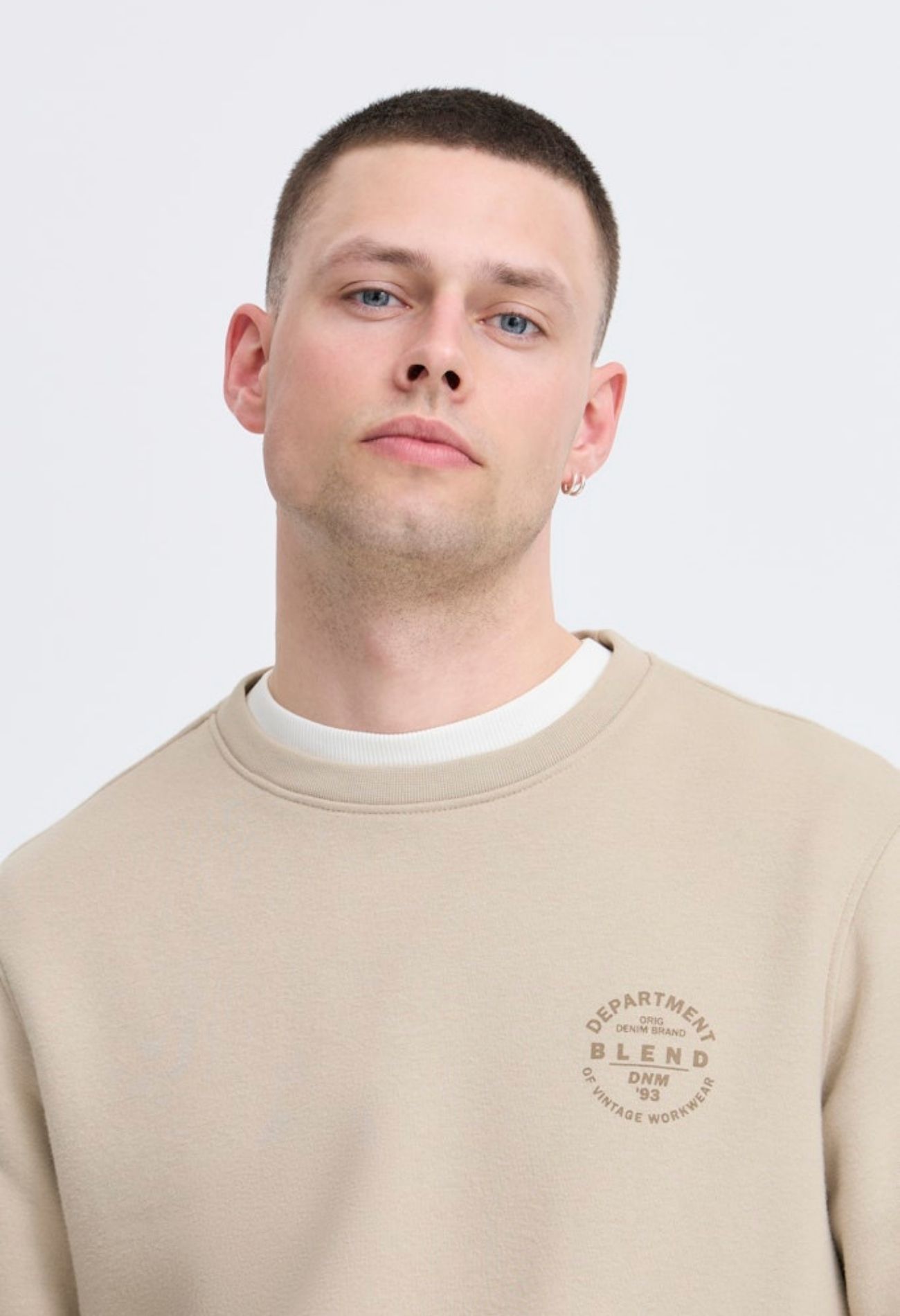 Zachte basic sweater in een neutrale kleur met een kleine opdruk in cirkelvorm. Lekker makkelijk, gewoon comfort, trendy op een jeans. Go for it.