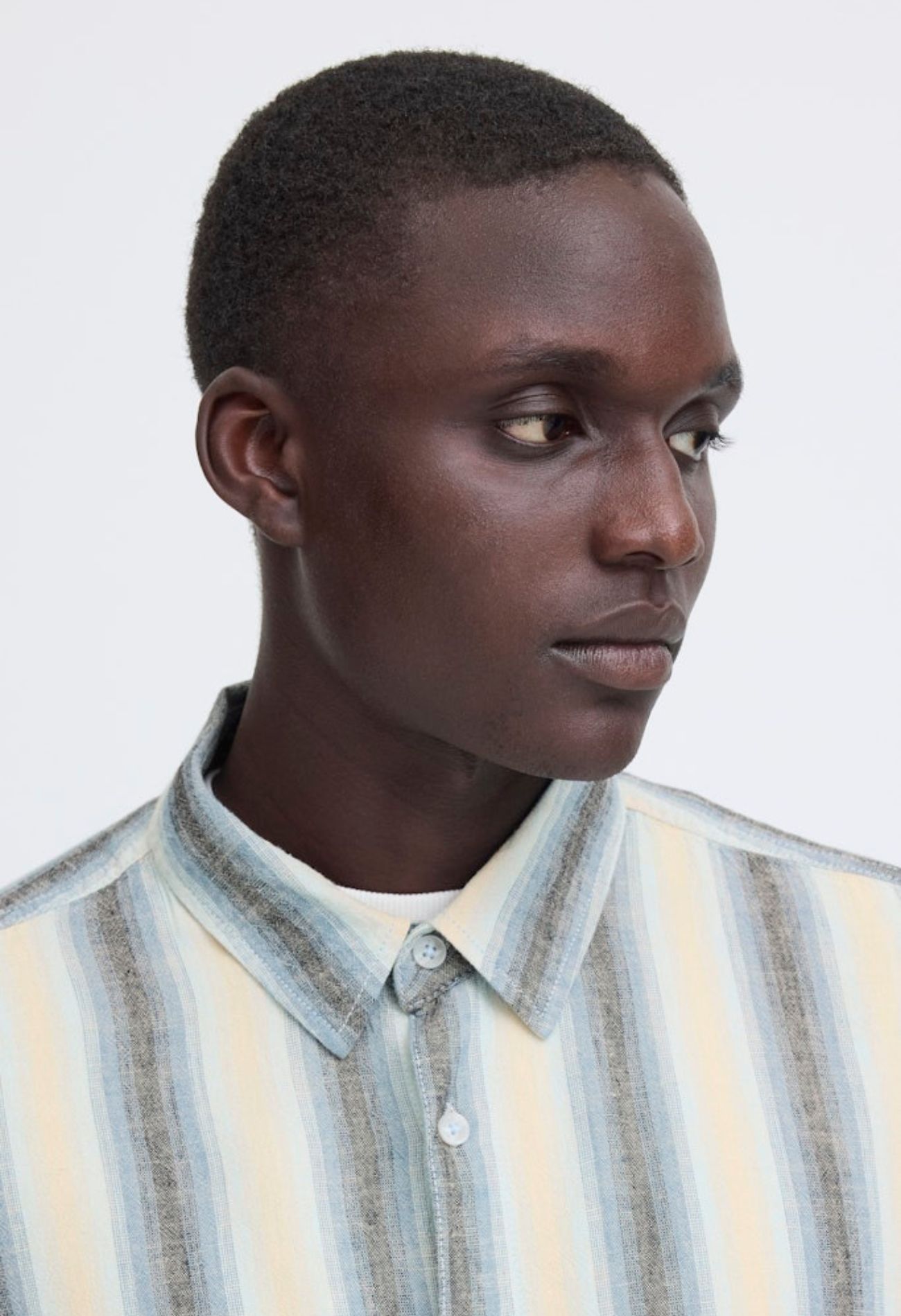 Dit gestreepte overhemd is de perfecte combinatie van comfort en stijl. Gemaakt van een hoogwaardige mix met 55% linnen, voelt de stof heerlijk licht en ademend aan, ideaal voor warmere dagen. De soepele valling zorgt voor een ontspannen, maar verzorgde uitstraling.