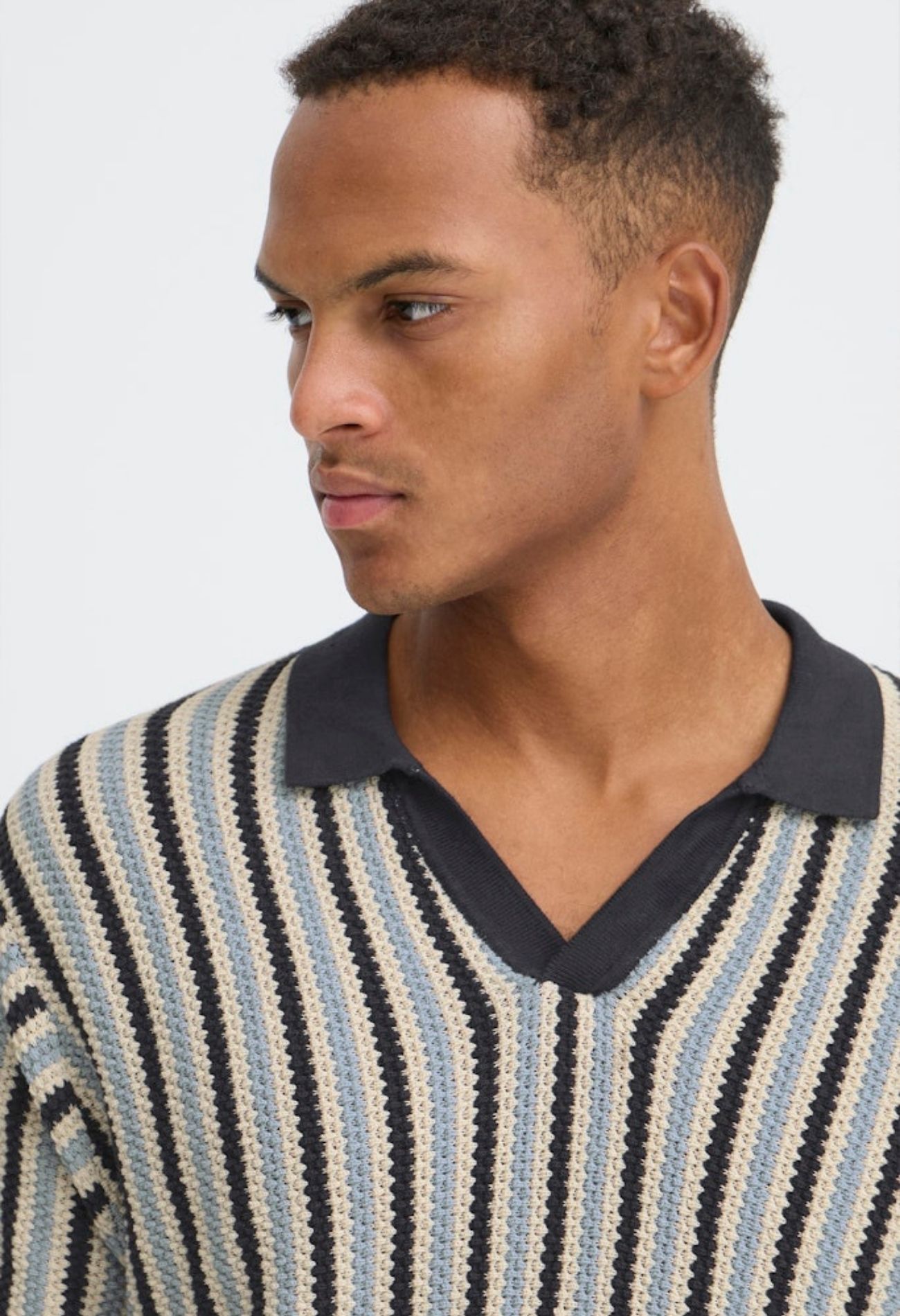 Geef je outfit een stijlvolle upgrade met deze herenpolo met verfijnd haakmotief en elegante verticale strepen. Het subtiele opengewerkte patroon zorgt voor een luchtige, ademende structuur en geeft de polo een unieke, moderne uitstraling. De verticale strepen creëren optisch een slanker silhouet en voegen een tijdloos karakter toe aan het ontwerp.