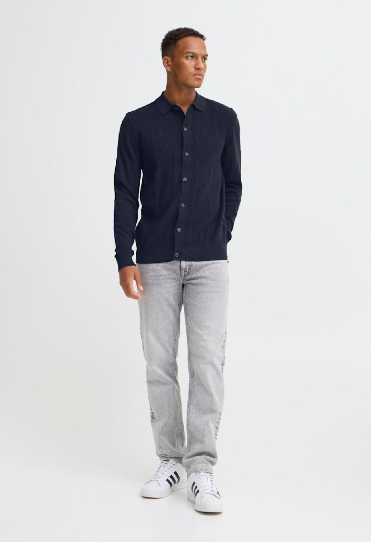 Een elegante must-have voor de moderne man die houdt van stijl, comfort en verfijnde details. eze trui onderscheidt zich door het subtiele opengewerkte haakpatroon, dat zorgt voor een rijke textuur en een luxe look. Het doorknoopmodel geeft de trui een veelzijdig karakter: draag hem volledig dichtgeknoopt voor een verzorgde, formele uitstraling of open over een T-shirt voor een meer casual look.