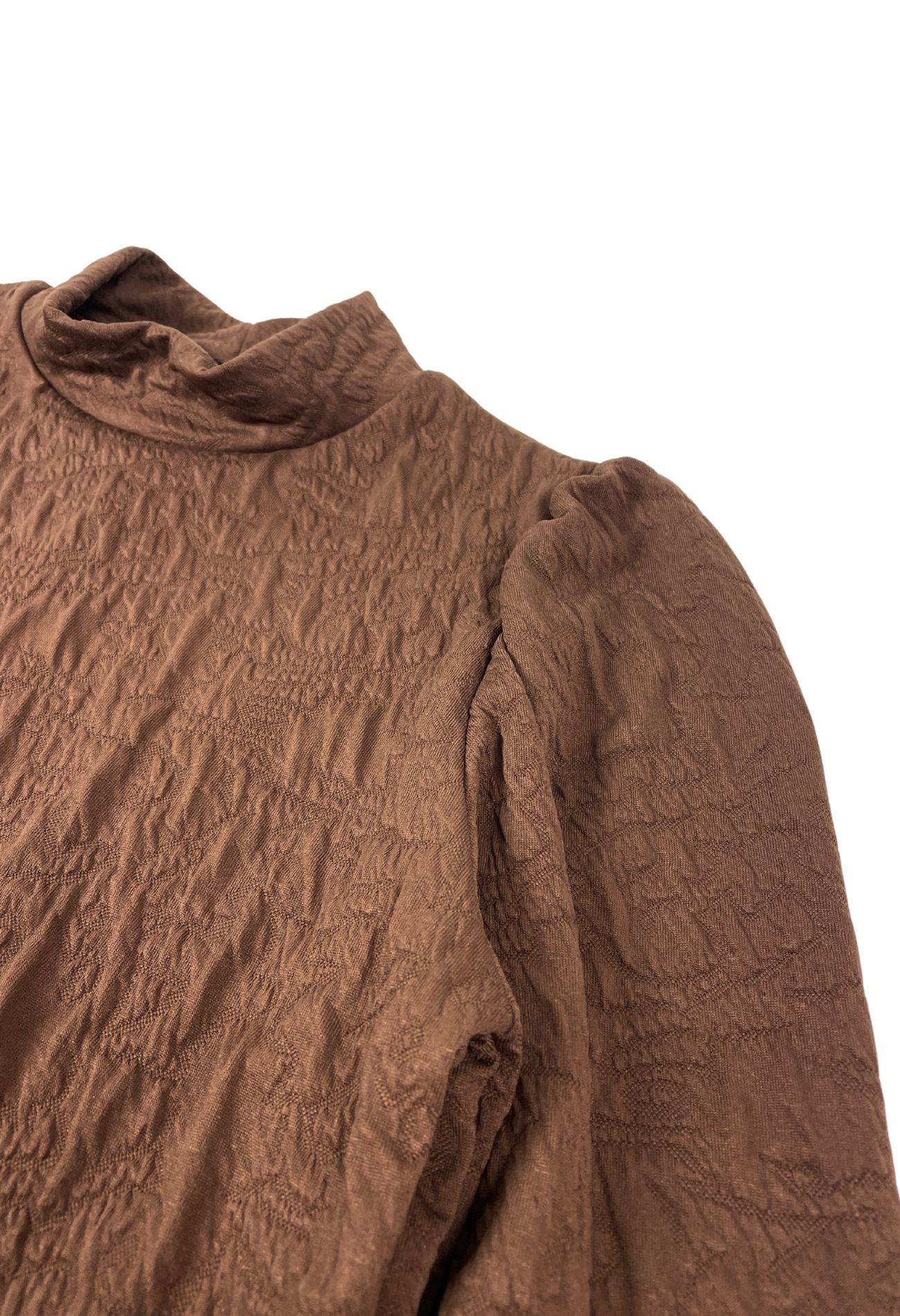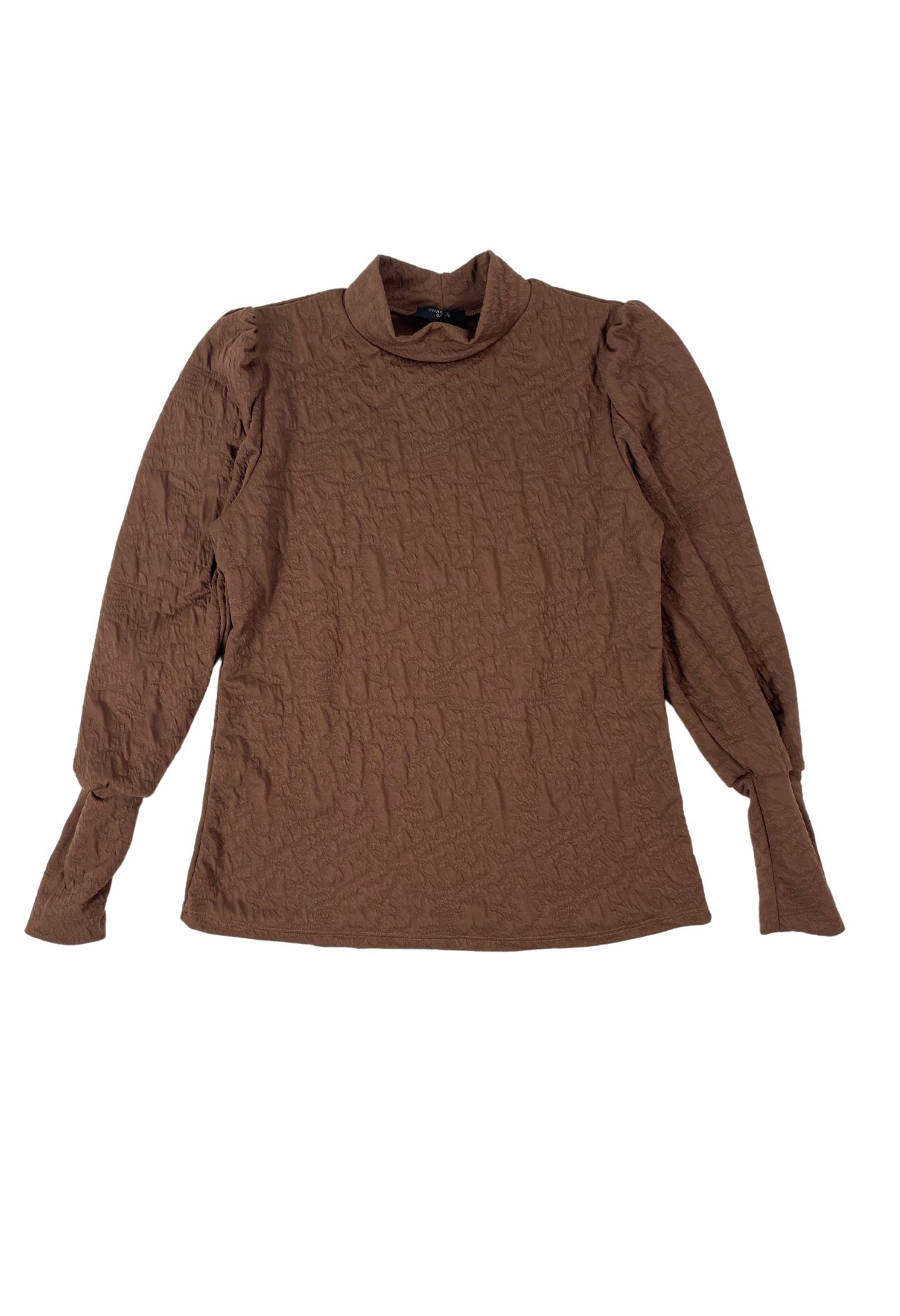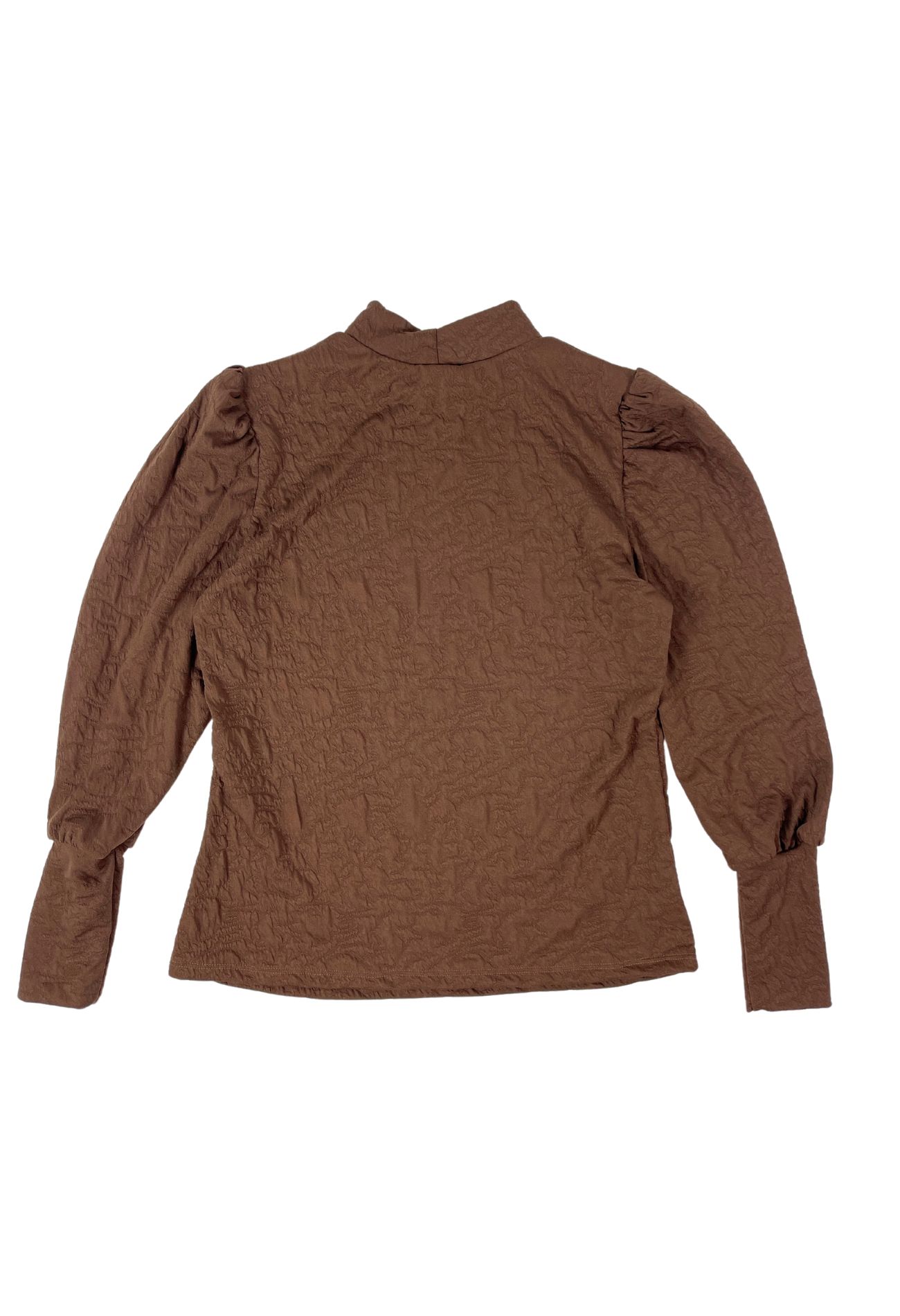 Top met turtleneck en pofmouwen met een lange manchet. Dit shirt heeft een structuur in de shop wat hem net even anders maakt. Leuk te combineren met een gilet of blazer, op een nette pantalon maar kan ook prima op een rok of spijkerbroek. Tijdloze top voor een nette look.