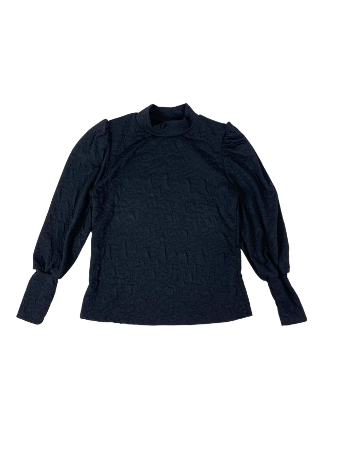 Top met turtleneck en pofmouwen met een lange manchet. Dit shirt heeft een structuur in de shop wat hem net even anders maakt. Leuk te combineren met een gilet of blazer, op een nette pantalon maar kan ook prima op een rok of spijkerbroek. Tijdloze top voor een nette look.