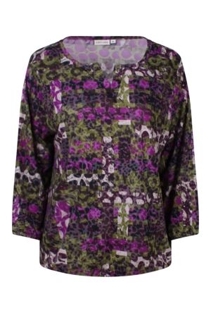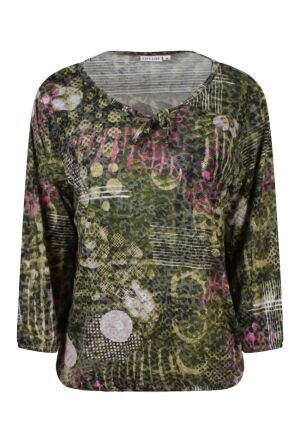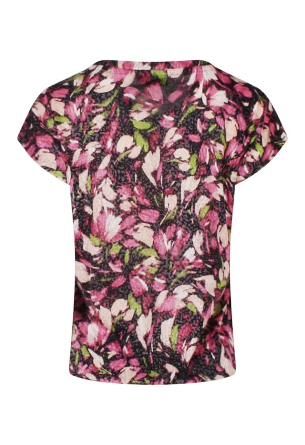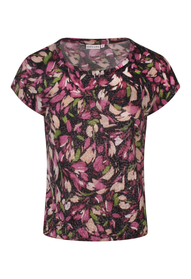 Vrolijk shirtje met een kleurrijk vegenpatroon. Met een elastiek in de taille om het shirt te laten bollen. Dit shirtje is licht doorschijnend want hij is dun en luchtig!
