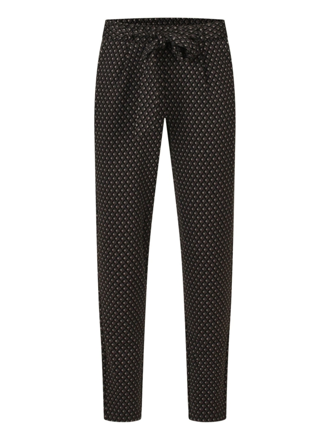 Statement en stijlvol. Deze jacquard geweven damespantalon met grafisch dessin is een echte eyecatcher. De bijpassende ceintuur accentueert de taille en de 31 inch lengte maakt ?m perfect voor een moderne, cropped look. Draag met een blouse en hakken voor chic, of juist met sneakers voor een coole twist.