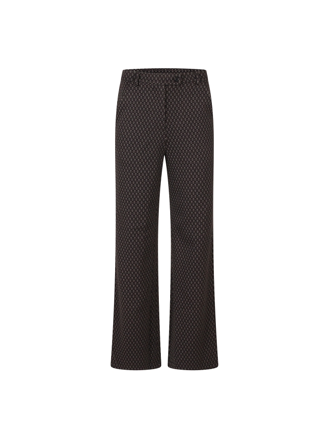 Deze nette pantalon met grafisch design heeft een rechte broekspijp, fijne steekzakken en combineer je perfect met de bijpassende blazer die je vind onder art.nr. W10379. Leuk als pak maar deze broek doet het ook goed met een effen neutrale top er op.