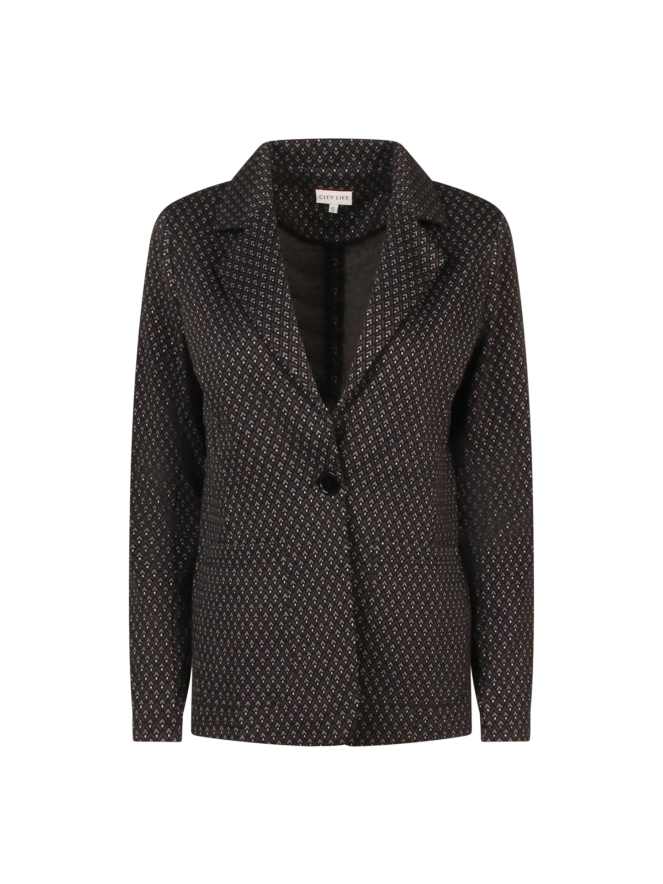 Deze mooie blazer met grafisch design heeft twee zakken en een fraaie reverskraag. Een bijpassende pantalon is verkrijgbaar onder art. nr. W10378. Voor een stijlvolle look is deze blazer een waardevolle aanvulling in je garderobe!