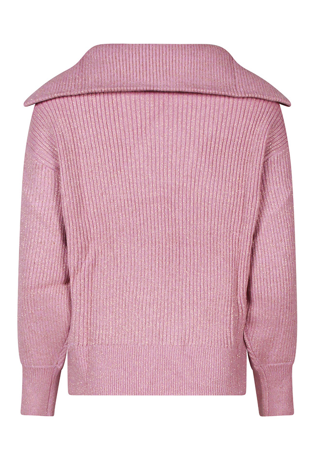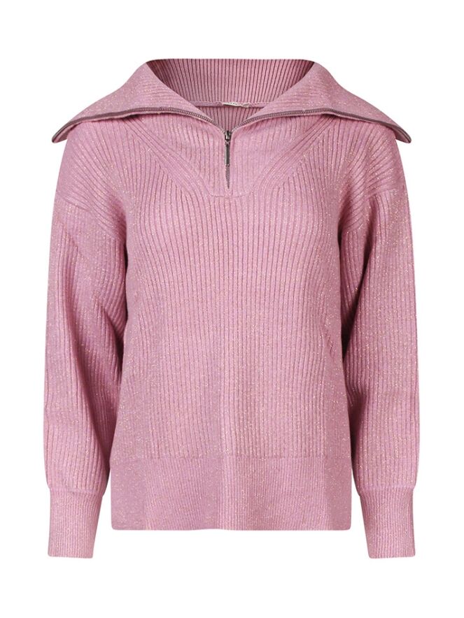 Deze rib gebreide trui heeft een echte schipperstrui look. Met heerlijke warme dicht te ritsen kol. In het garen zit een lurex glitterdraad verweven wat deze trui echt anders maakt.