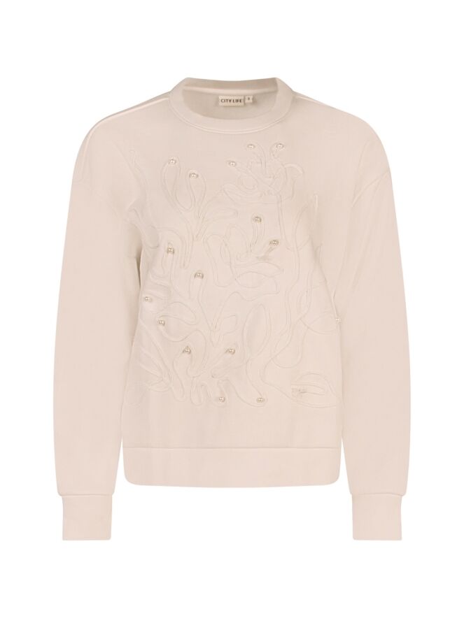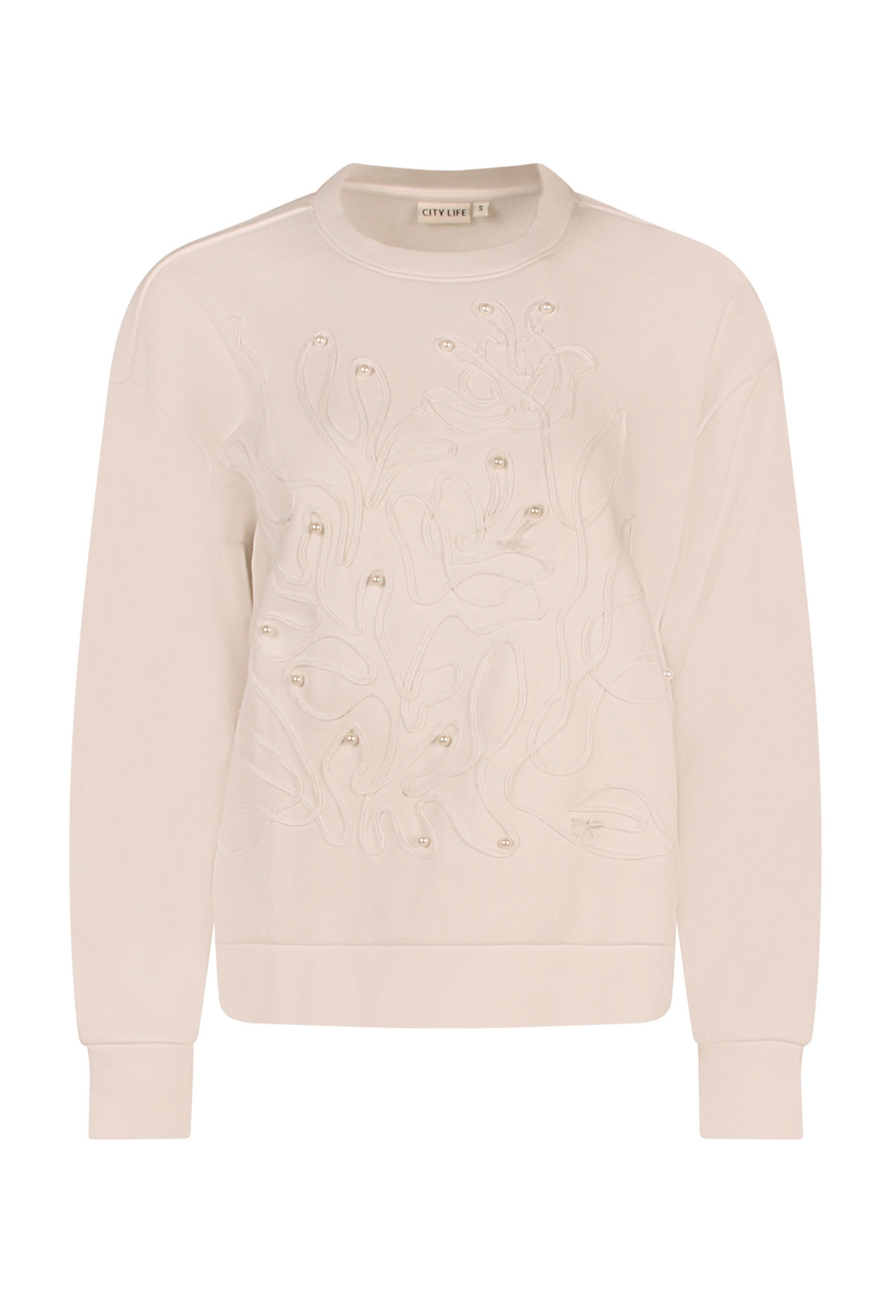 Deze dames sweat is een echte eyecatcher die moeiteloos comfort en stijl combineert. Het opgestikte lint op het voorpand zorgt voor een vrouwelijke en speelse twist, terwijl de parelstuds een subtiele, chique glans toevoegen. Zo krijgt een basic sweat meteen een luxueuze uitstraling. Gemaakt van een zachte en comfortabele kwaliteit, voelt deze sweater heerlijk aan en is hij perfect voor dagelijks gebruik. Dankzij het moderne design draag je hem zowel casual op een jeans als wat gekleder op een rok of pantalon.