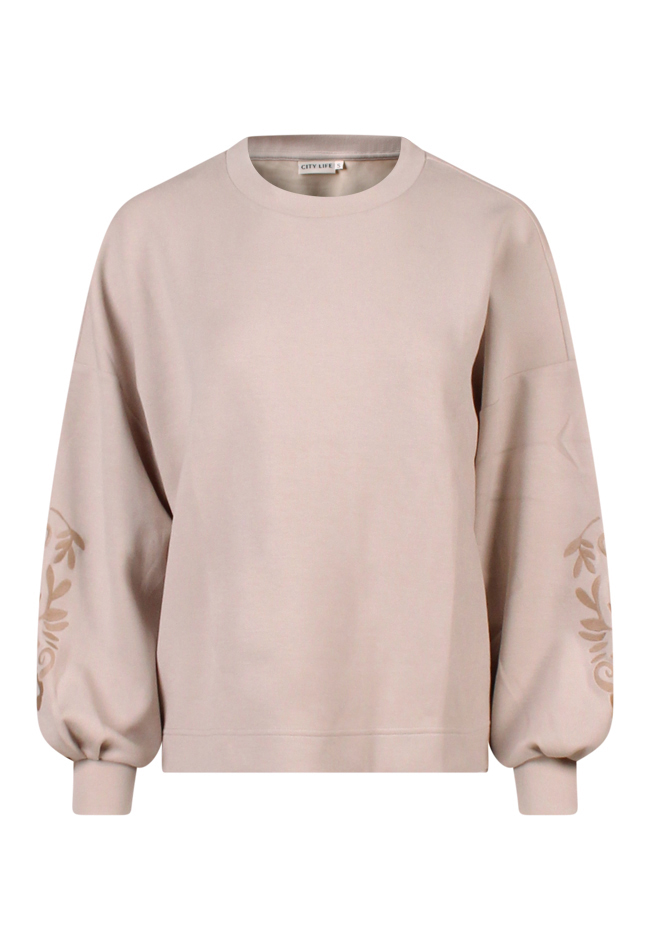 Deze sweater van soft scuba combineert comfort met een vrouwelijke touch! De zachte stretchstof voelt heerlijk aan, terwijl de elegante ballonmouwen en verfijnde borduursels zorgen voor een unieke en trendy uitstraling. Draag hem solo of als co-ord set met de bijpassende broek (W10392) voor een complete look die stijl en gemak uitstraalt.