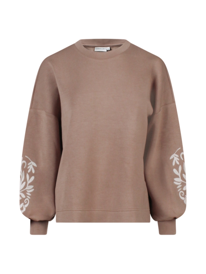 Deze sweater van soft scuba combineert comfort met een vrouwelijke touch! De zachte stretchstof voelt heerlijk aan, terwijl de elegante ballonmouwen en verfijnde borduursels zorgen voor een unieke en trendy uitstraling. Draag hem solo of als co-ord set met de bijpassende broek (W10392) voor een complete look die stijl en gemak uitstraalt.