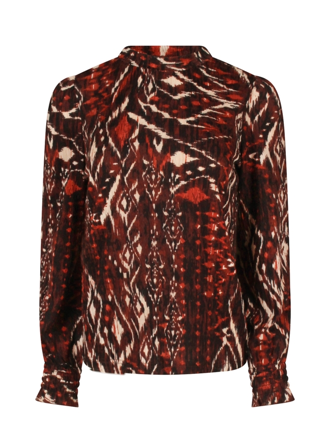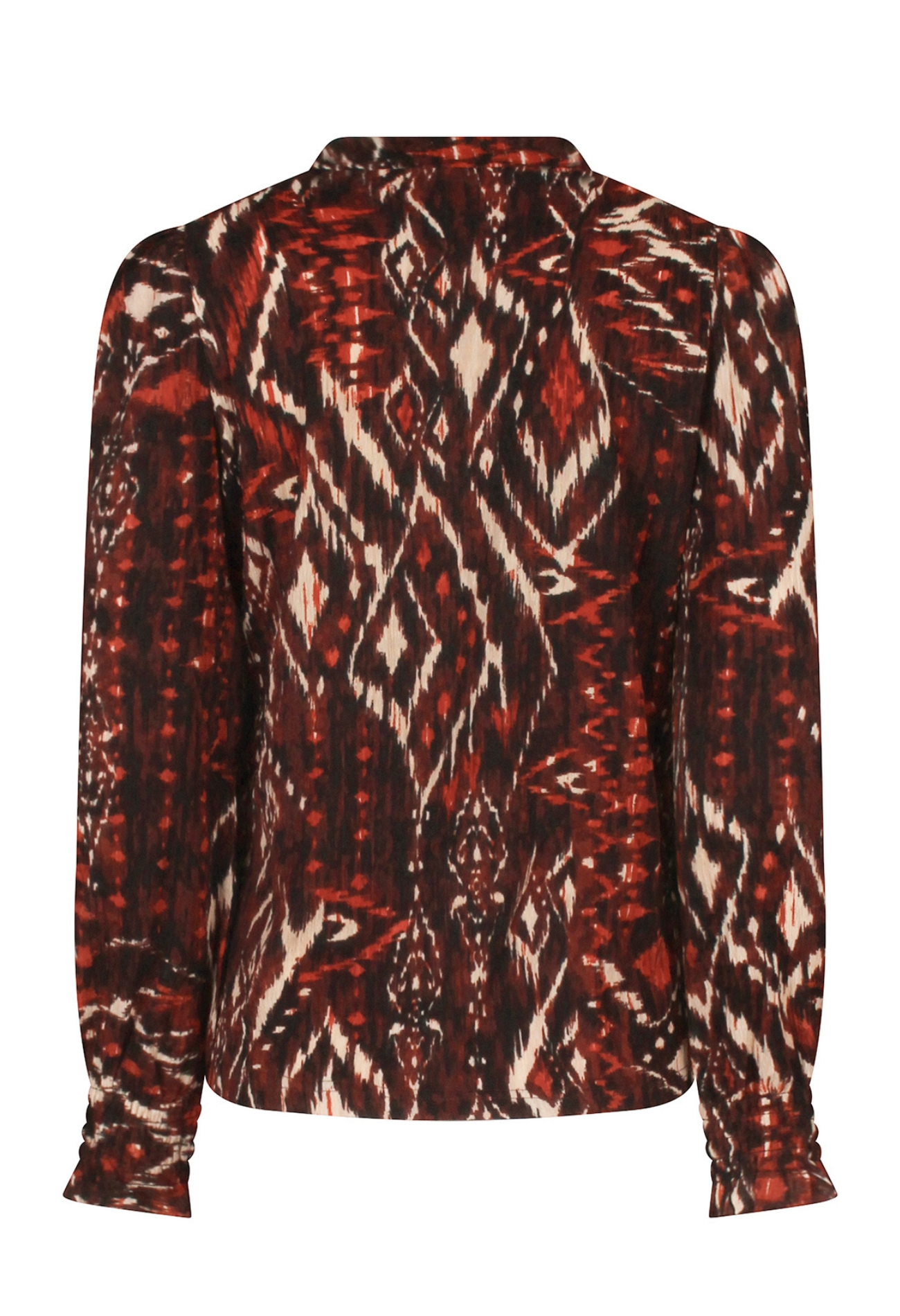 Deze dames top is een elegante toevoeging aan je garderobe. De top is uitgevoerd in een mooie stof met structuur en dessin, en heeft een stijlvolle turtleneck met smockdetails. Ook de mouwen zijn afgewerkt met smock, wat zorgt voor een vrouwelijke en speelse touch. Perfect te combineren met zowel een jeans voor een casual look als een rok voor een geklede outfit.