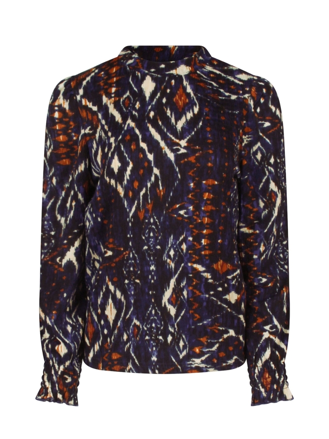 Deze dames top is een elegante toevoeging aan je garderobe. De top is uitgevoerd in een mooie stof met structuur en dessin, en heeft een stijlvolle turtleneck met smockdetails. Ook de mouwen zijn afgewerkt met smock, wat zorgt voor een vrouwelijke en speelse touch. Perfect te combineren met zowel een jeans voor een casual look als een rok voor een geklede outfit.