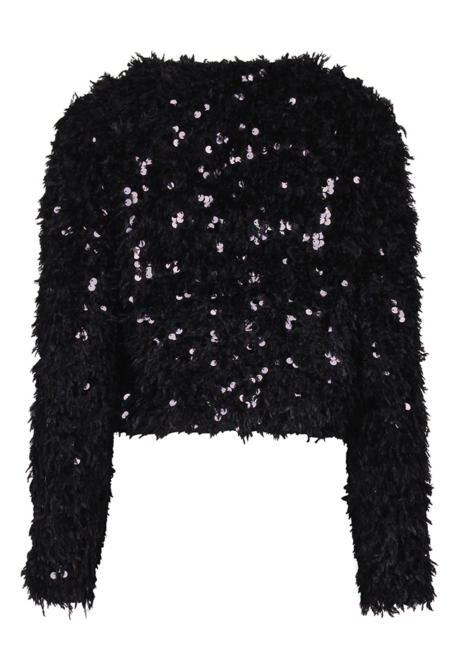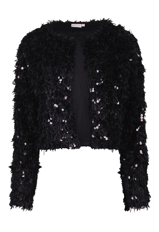 Dit damesvestje is gemaakt van een zachte featherlook stof met glinsterende sequins voor een elegante en feestelijke uitstraling. Het vestje heeft een licht openvallend model en voelt comfortabel en luxe aan. Perfect om over een jurk of top te dragen voor een speciale gelegenheid.