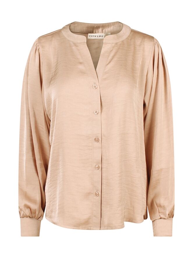 Deze dames blouse is gemaakt van een prachtige hammered satin stof die subtiel glanst en een luxe uitstraling geeft. De elegante pofmouwen zorgen voor een vrouwelijke touch en maken de blouse helemaal van nu. Dankzij de veelzijdige look combineer je hem moeiteloos met een jeans voor een stijlvolle, casual outfit, of draag je hem met een rok of pantalon voor een chiquere gelegenheid.