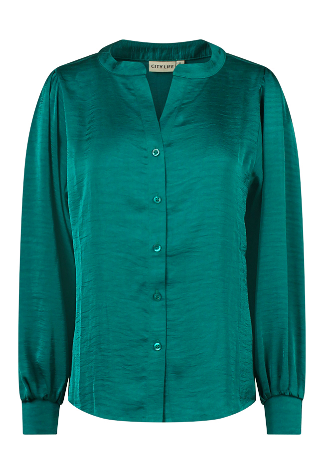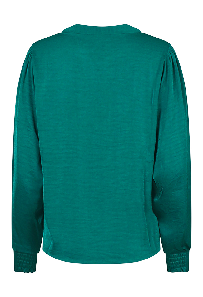 Deze dames blouse is gemaakt van een prachtige hammered satin stof die subtiel glanst en een luxe uitstraling geeft. De elegante pofmouwen zorgen voor een vrouwelijke touch en maken de blouse helemaal van nu. Dankzij de veelzijdige look combineer je hem moeiteloos met een jeans voor een stijlvolle, casual outfit, of draag je hem met een rok of pantalon voor een chiquere gelegenheid.