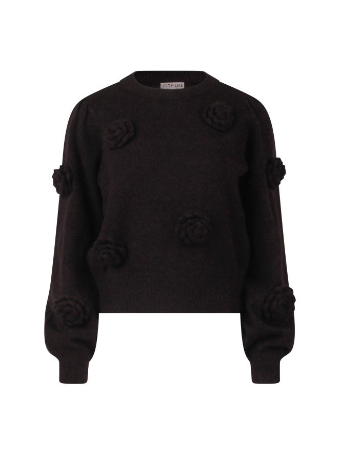 Deze gebreide damestrui is een echte eyecatcher dankzij de sierlijke opgestikte bloemen en de elegante pofmouwen. Het speelse design geeft je outfit een romantische twist, terwijl de zachte knit zorgt voor een comfy fit. Draag hem op een jeans voor een casual look met een vrouwelijke touch, of combineer met een rok voor een meer geklede stijl.