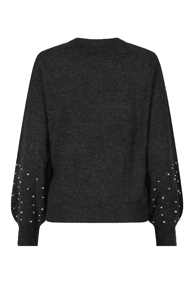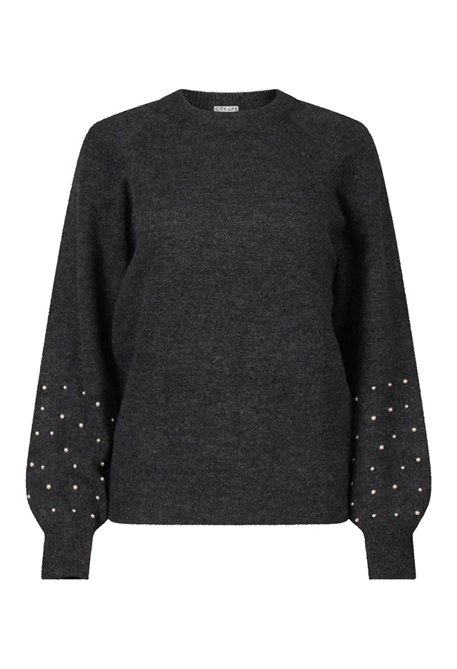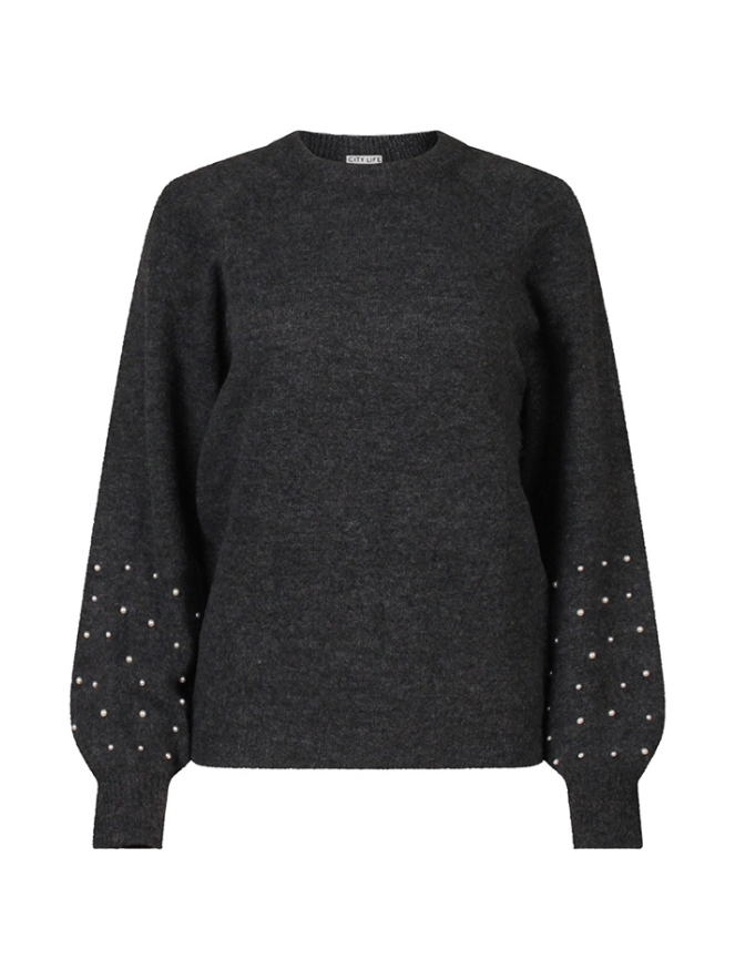 Heerlijke, zachte gebreide trui met trendy ballonmouwen die speels aflopen. Het fijne detail? Elegante parels aan het uiteinde van de mouwen die zorgen voor een subtiele, vrouwelijke touch. Perfect om te combineren met een jeans voor een stijlvolle, casual look met een beetje extra flair.