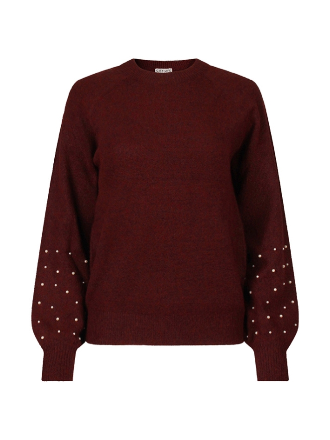 Heerlijke, zachte gebreide trui met trendy ballonmouwen die speels aflopen. Het fijne detail? Elegante parels aan het uiteinde van de mouwen die zorgen voor een subtiele, vrouwelijke touch. Perfect om te combineren met een jeans voor een stijlvolle, casual look met een beetje extra flair.