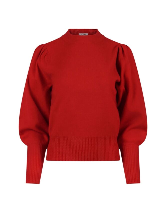 Heerlijke fijn gebreide trui met een kabelpatroon in de tailleboord en boord aan de mouwen. Met pofmouwen en een mooie turtleneck.