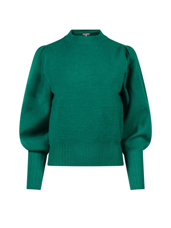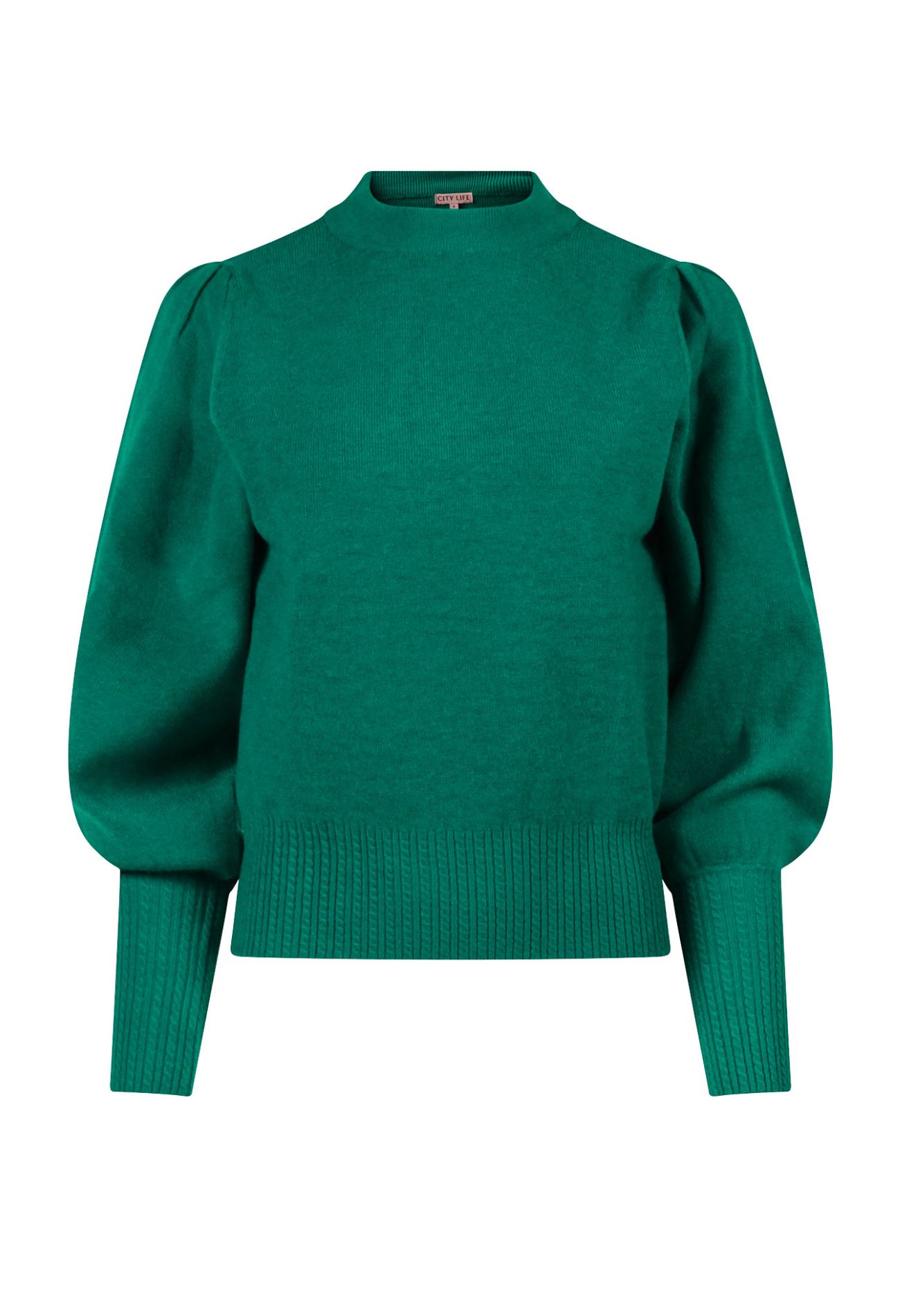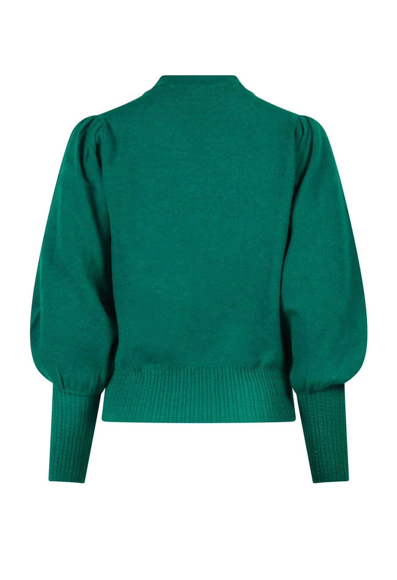 Heerlijke fijn gebreide trui met een kabelpatroon in de tailleboord en boord aan de mouwen. Met pofmouwen en een mooie turtleneck.