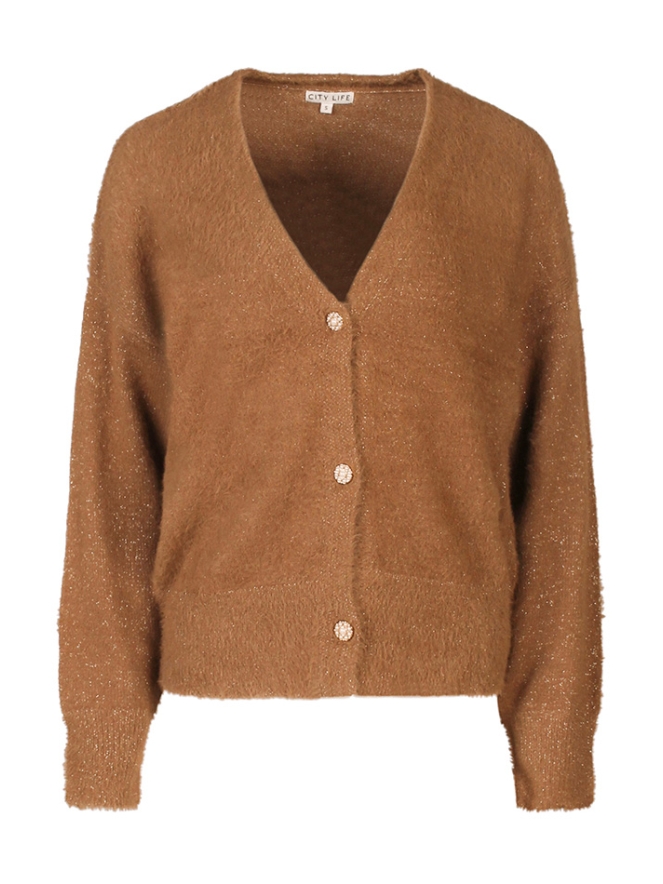 Voeg een vleugje glamour toe aan je outfit met dit charmante damesvest van featheryarn en lurex. De subtiele glans van het lurexdraad zorgt voor een verfijnde sparkle, terwijl de zachte featheryarn een heerlijk draagcomfort biedt. De blikvangers? De fancy knopen in bloemvorm, afgewerkt met parels als sierlijke blaadjes. Een elegant detail dat het vest net dat beetje extra geeft.