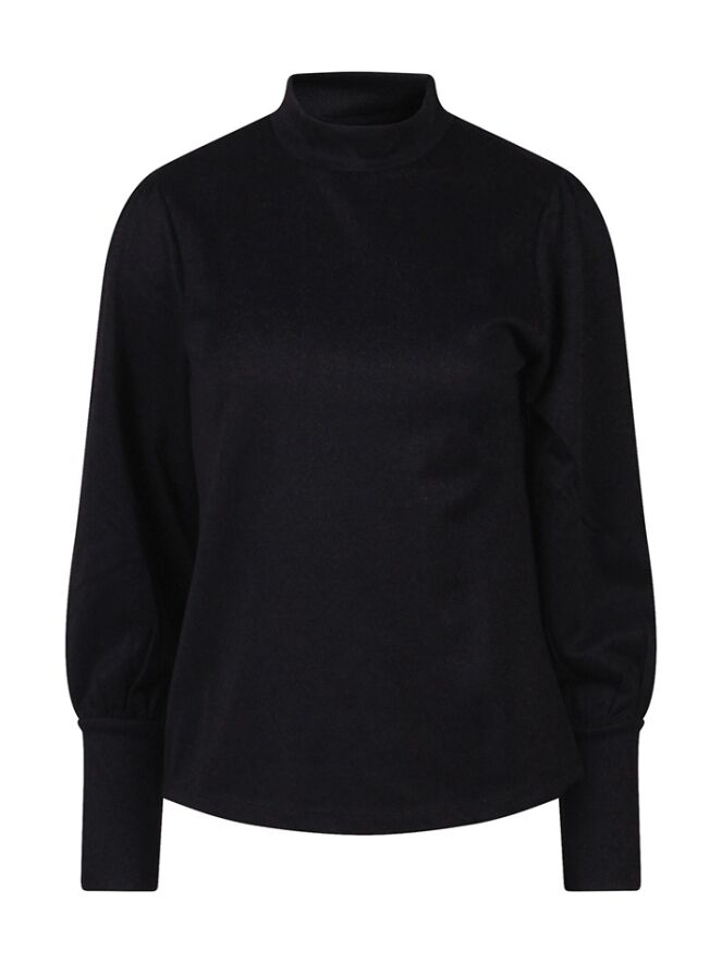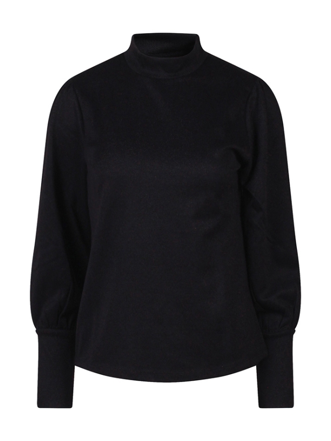 Deze dames top combineert een zachte polyestermix met een subtiele metallic glans, waardoor ?ie nét dat beetje extra heeft. De turtleneck en speelse pofmouwen geven de top een trendy, vrouwelijke uitstraling. Perfect om te dragen onder een blazer of gewoon op een jeans voor een chique, feestelijke look.