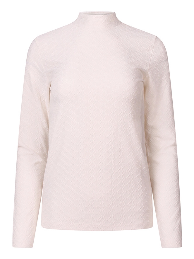 Deze dames top is gemaakt van een fancy jacquard met een subtiel ingeweven printje ? stijlvol én comfortabel. De turtleneck geeft een elegante touch, terwijl de stretchy stof mooi aansluit. Leuk om te dragen op een flared jeans, en met een gilet erover ben je helemaal klaar voor de koudere dagen. Een perfecte mix van vrouwelijk en trendy!