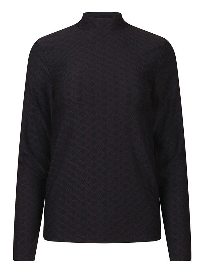 Deze dames top is gemaakt van een fancy jacquard met een subtiel ingeweven printje ? stijlvol én comfortabel. De turtleneck geeft een elegante touch, terwijl de stretchy stof mooi aansluit. Leuk om te dragen op een flared jeans, en met een gilet erover ben je helemaal klaar voor de koudere dagen. Een perfecte mix van vrouwelijk en trendy!