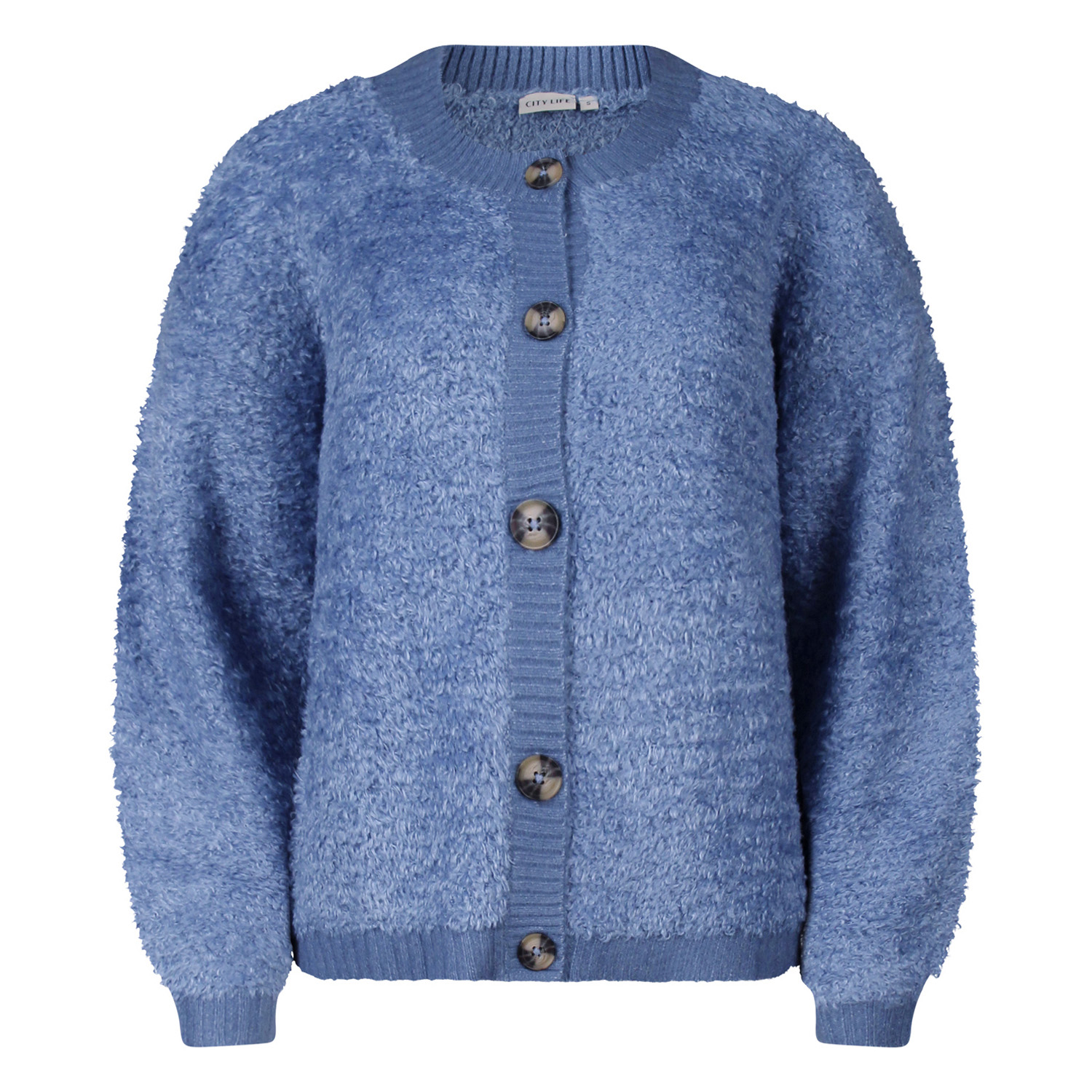 Trendy vest van een curly breisel met mooie knopen. Combineert mooi over een blouse of mooie top. Multi inzetbaar en tijdloos.