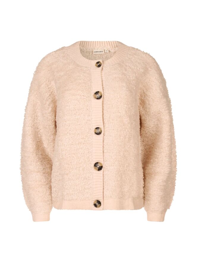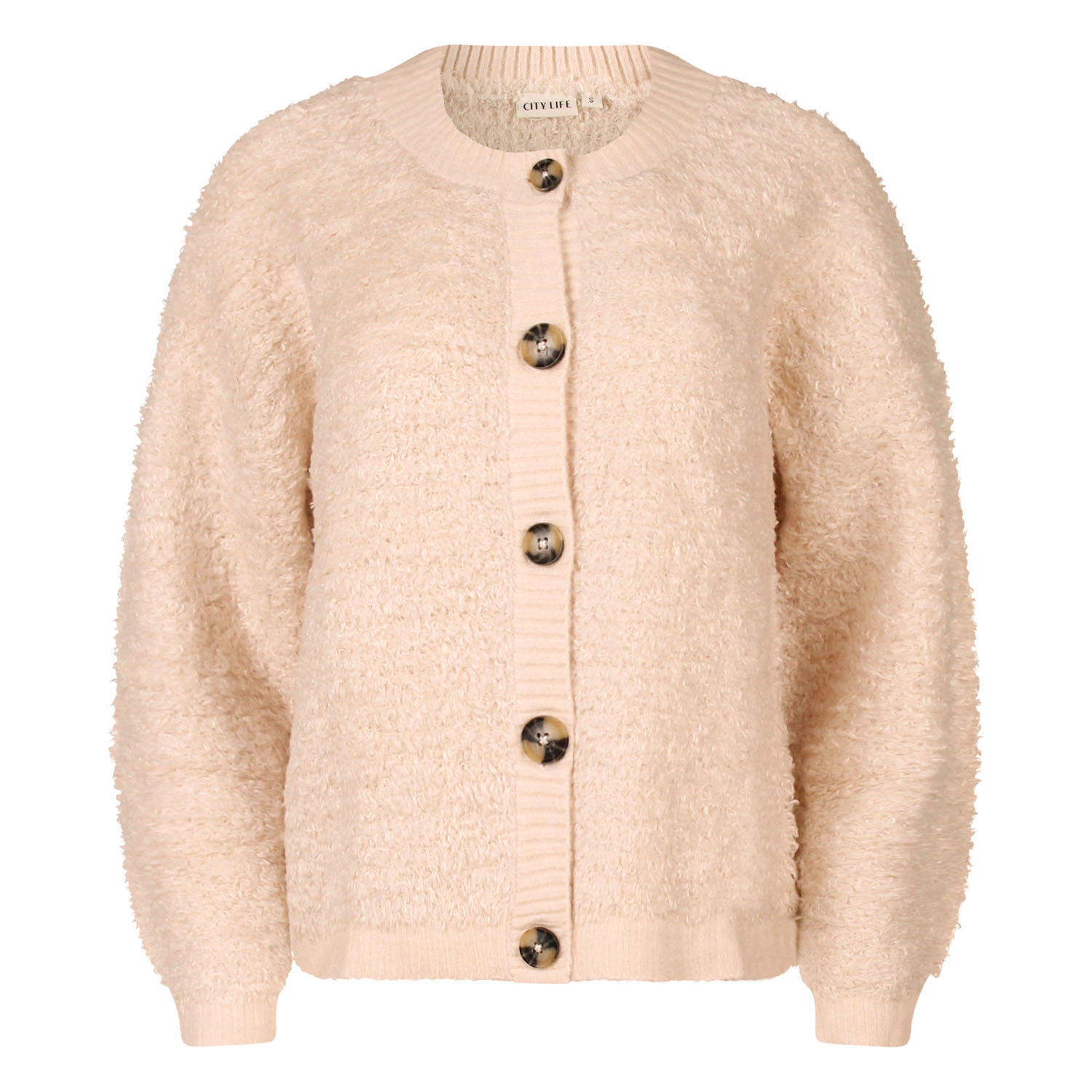 Trendy vest van een curly breisel met mooie knopen. Combineert mooi over een blouse of mooie top. Multi inzetbaar en tijdloos.