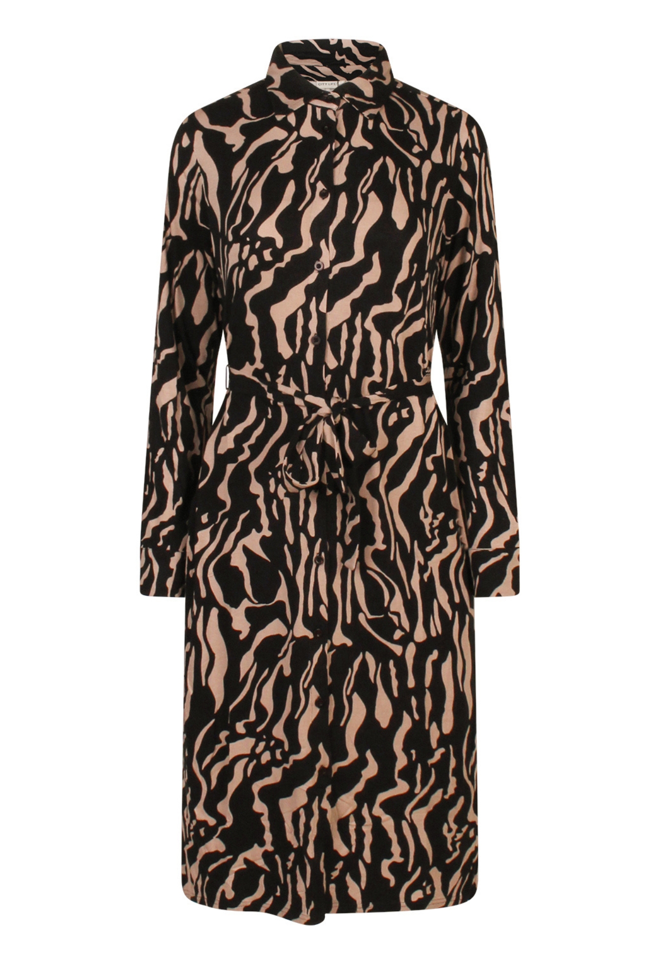 Deze soepel vallende jurk van Citylife is een doorknoop model van katoen tricot. Met een lengte tot op de knie heeft deze jurk een midi lengte. Met fijne steekzakken en geleverd met een bijpassende ceintuur kom je trendy voor de dag.