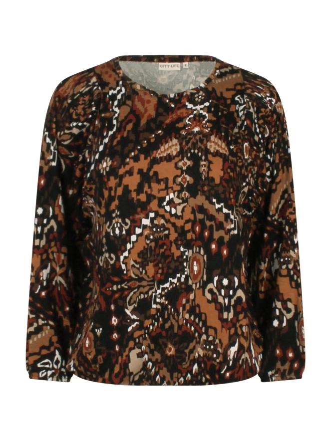 Mooie top van soepel vallende katoen tricot met een driekwart mouw. Deze top heeft een elastiek in de taille maar ook aan het uiteinde van de mouw. Makkelijk om het iets te laten bollen. Combineer deze top met je fijnste spijkerbroek en je bent ready to go.