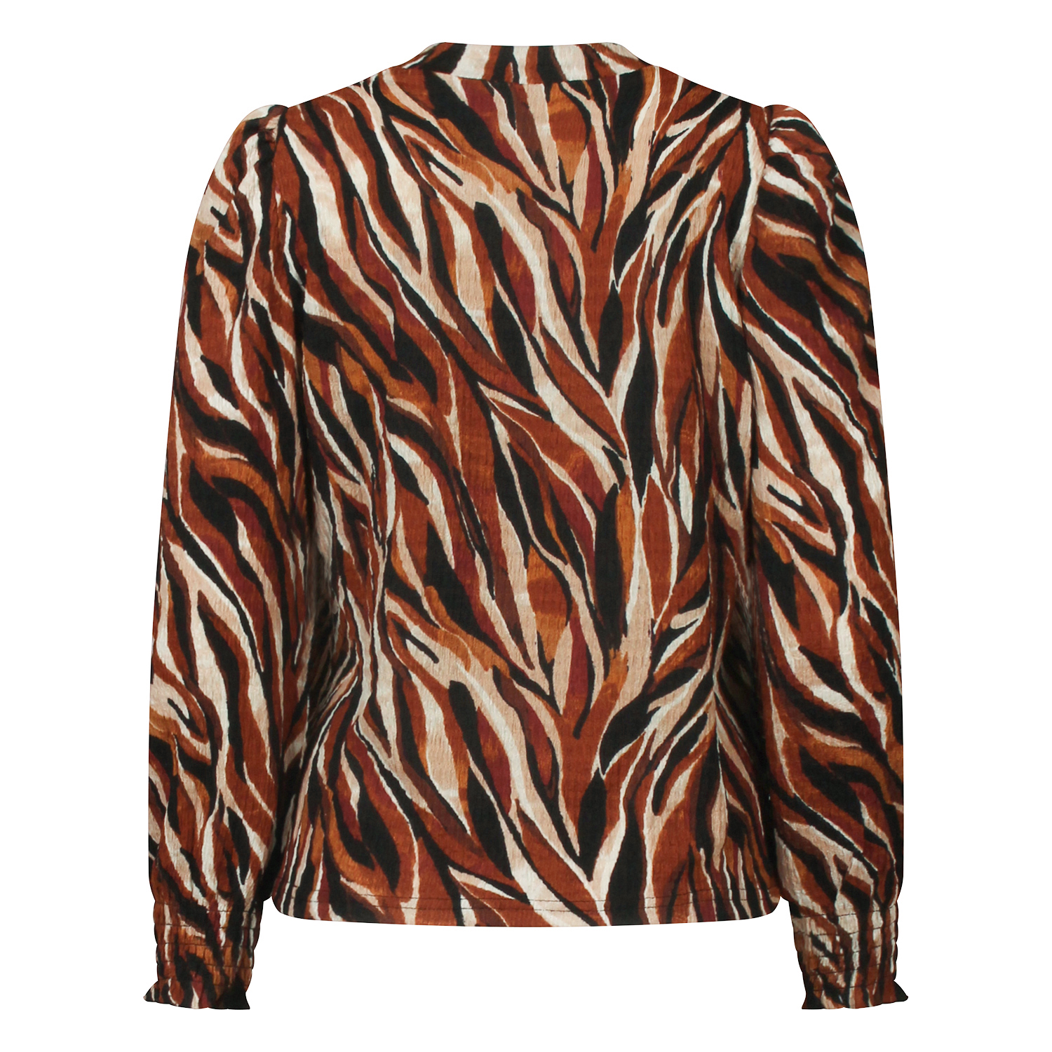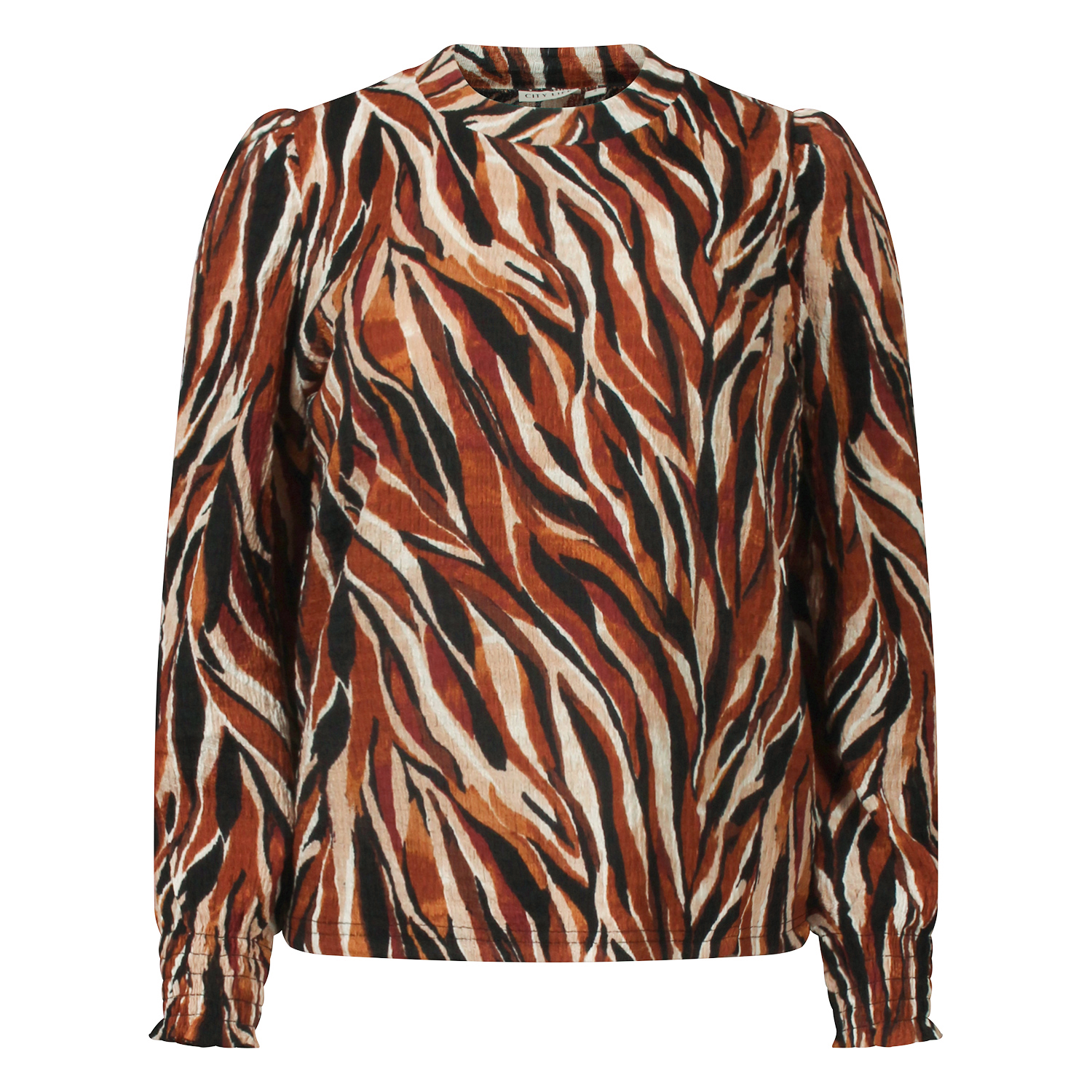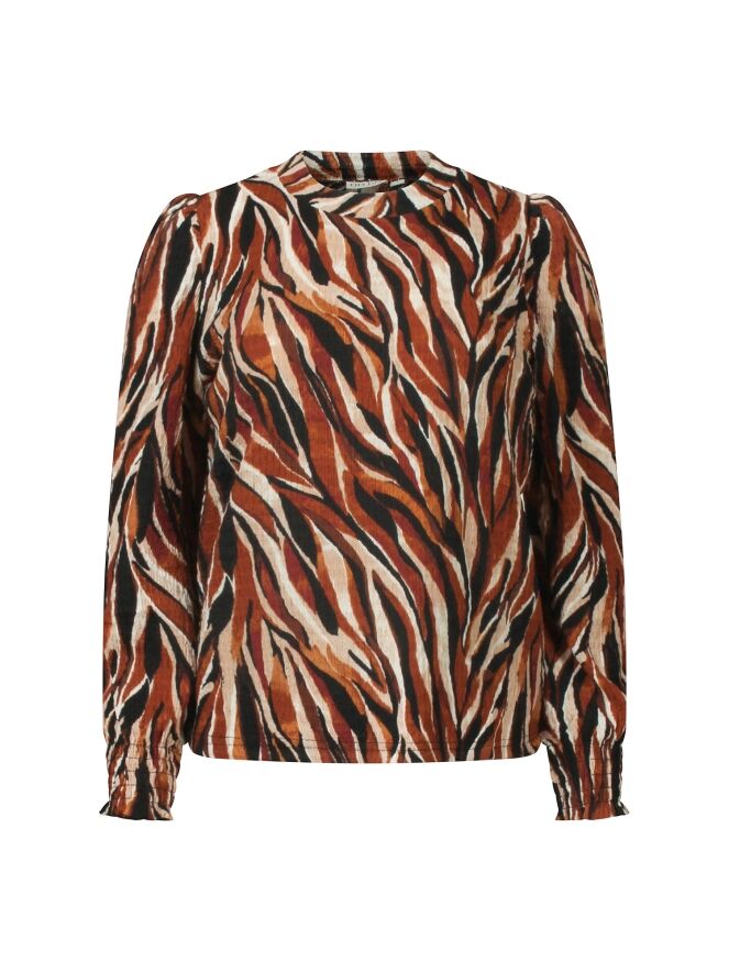 Multicolor top met een lichte turtleneck en een allover smock structuur in de stof. Laat zich makkelijk combineren met jeans voor een casual look maar doet het ook erg leuk op een pantalon voor een meer geklede nette look.