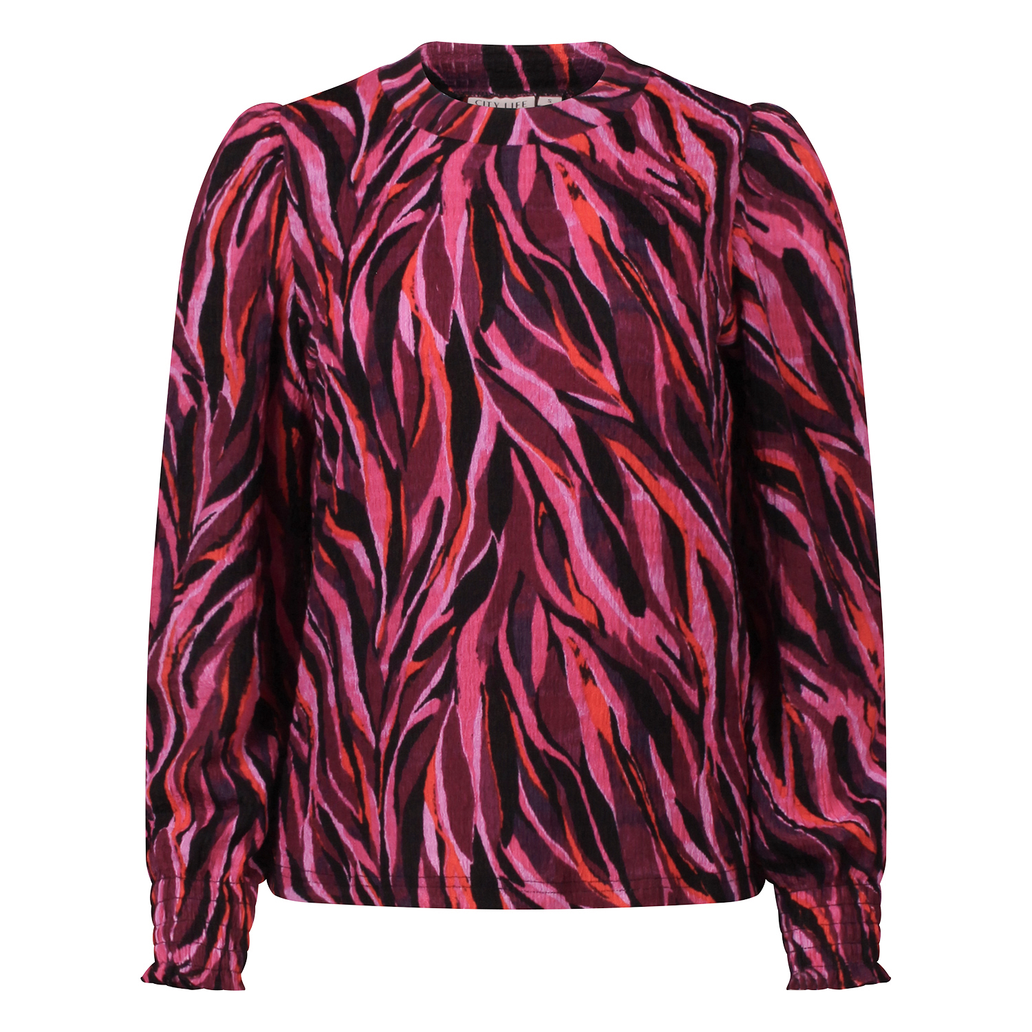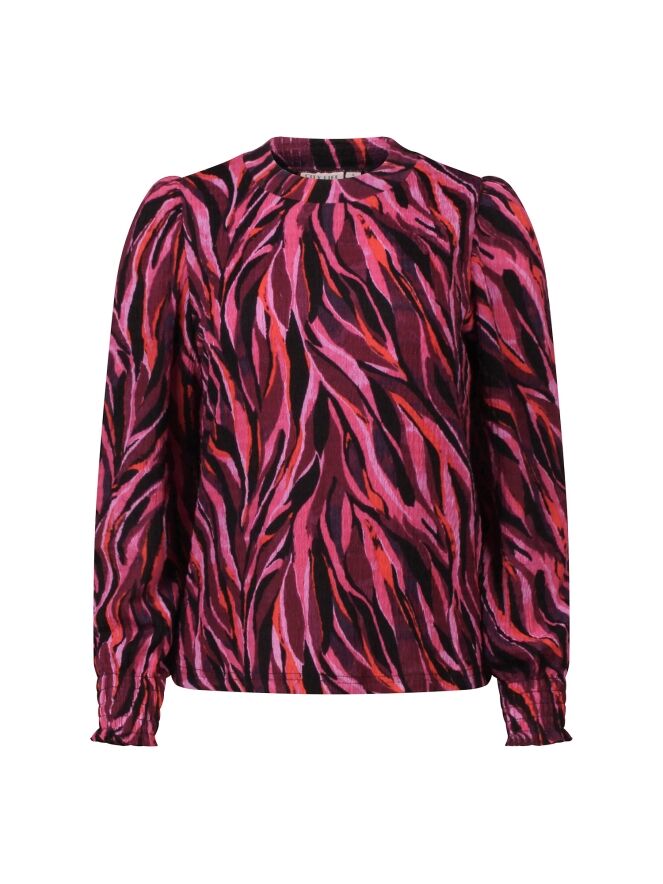 Multicolor top met een lichte turtleneck en een allover smock structuur in de stof. Laat zich makkelijk combineren met jeans voor een casual look maar doet het ook erg leuk op een pantalon voor een meer geklede nette look.