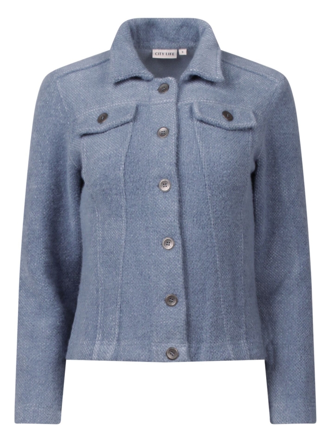 Dit jacquard jack is geïnspireerd op het klassieke denim jack, maar dan met een elegante twist. De rijke jacquardstof geeft het een unieke structuur, terwijl de klepzakken en het rechte model zorgen voor een stoere, tijdloze look. Mooi om open te dragen over een top of dichtgeknoopt als statement piece.