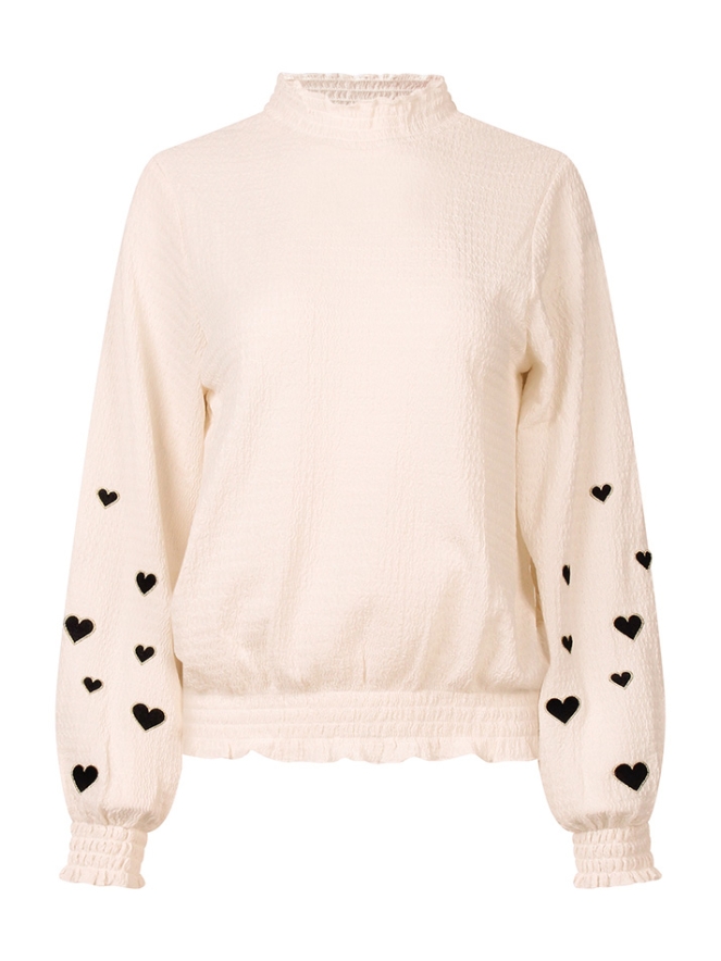Deze luchtige dames top van crinkle stof is perfect voor een effortless look met net dat beetje extra. De mouwen zijn afgewerkt met een lief hartborduursel en een gesmockt detail dat ook terugkomt in de zoom,voor een subtiele, vrouwelijke touch. Combineer hem met een jeans, rok of short: deze top doet het allemaal.