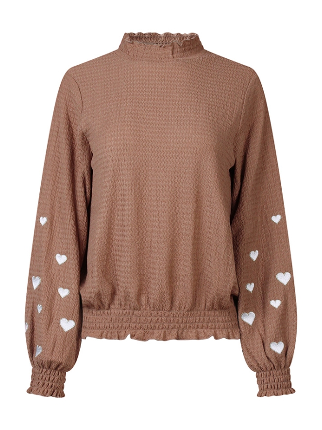 Deze luchtige dames top van crinkle stof is perfect voor een effortless look met net dat beetje extra. De mouwen zijn afgewerkt met een lief hartborduursel en een gesmockt detail dat ook terugkomt in de zoom,voor een subtiele, vrouwelijke touch. Combineer hem met een jeans, rok of short: deze top doet het allemaal.