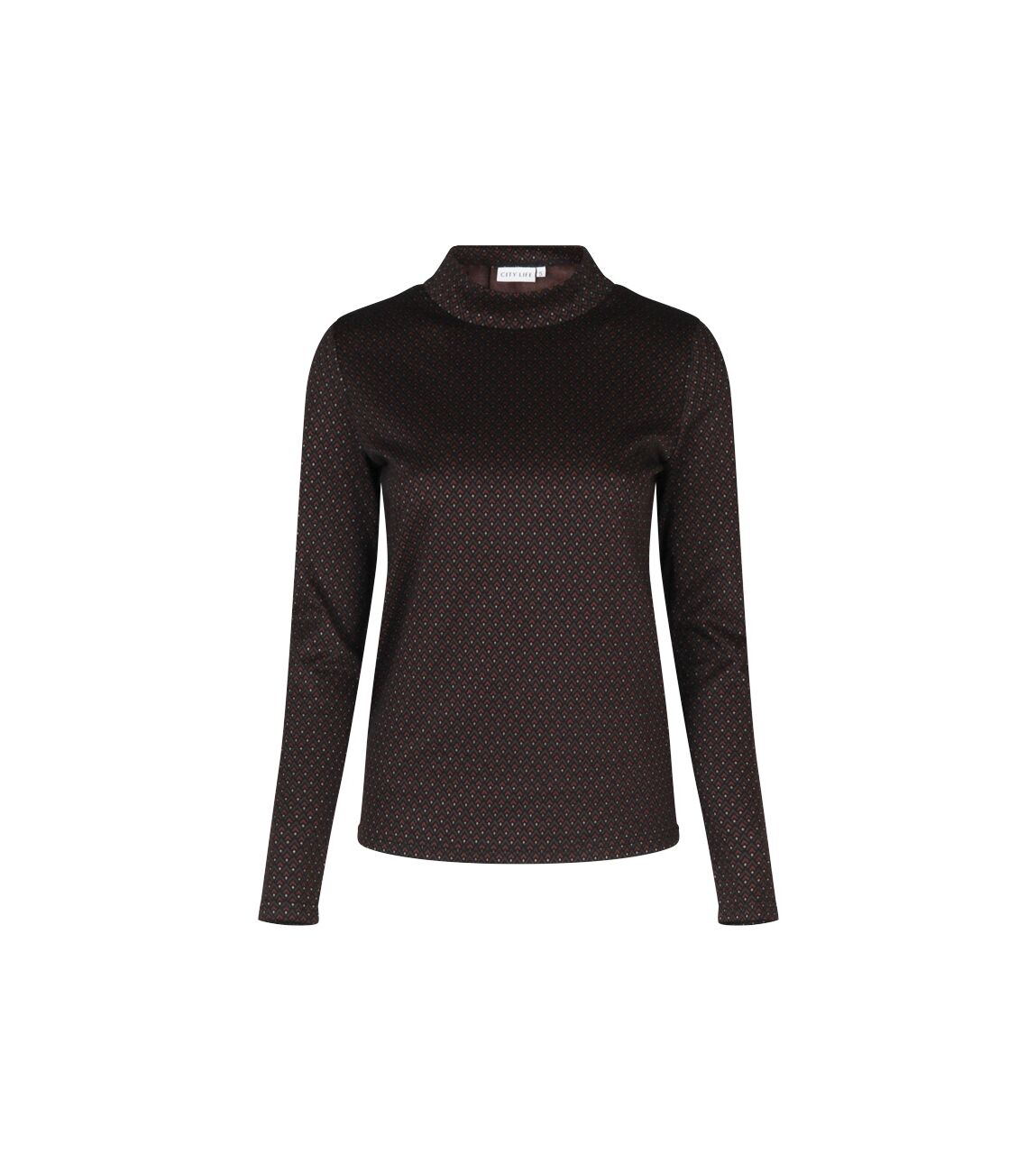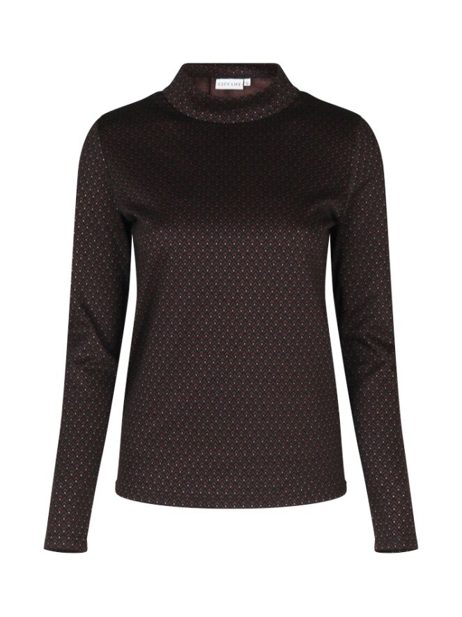 Jacquard T-shirt met langen mouwen en een turtleneck. Het T-shirt heeft een all-over retro print.