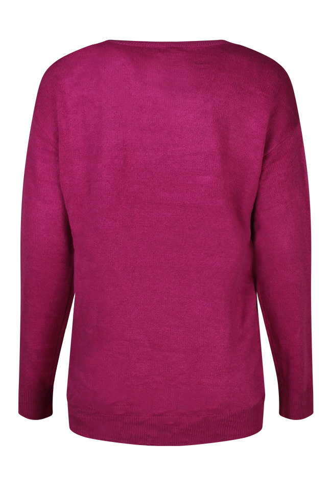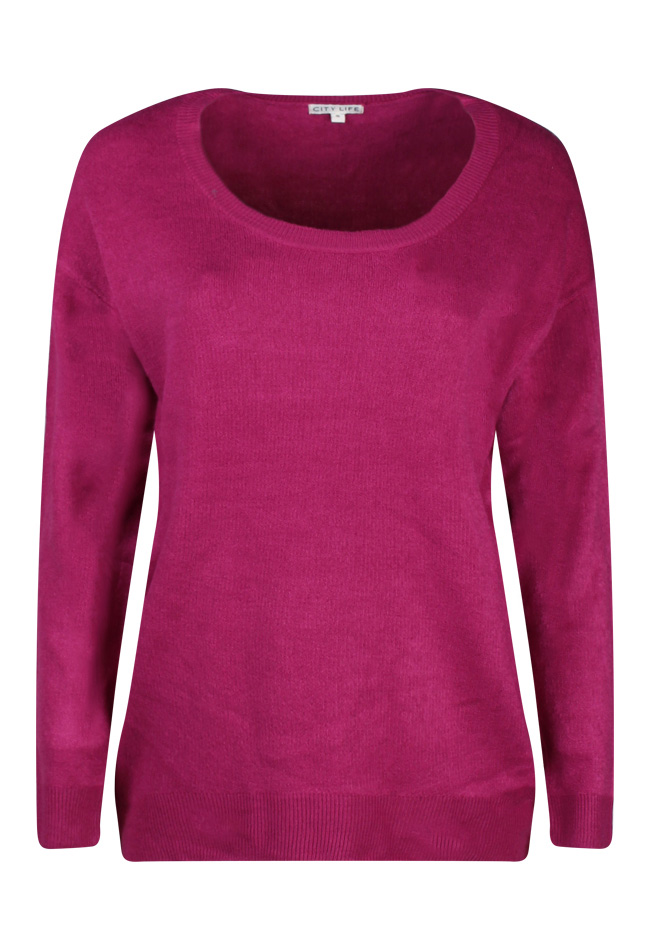 Deze trui heeft een cashmire look en een ronde hals. De achterkant is rond en langer dan de voorkant. Lengte van de trui is normaal.