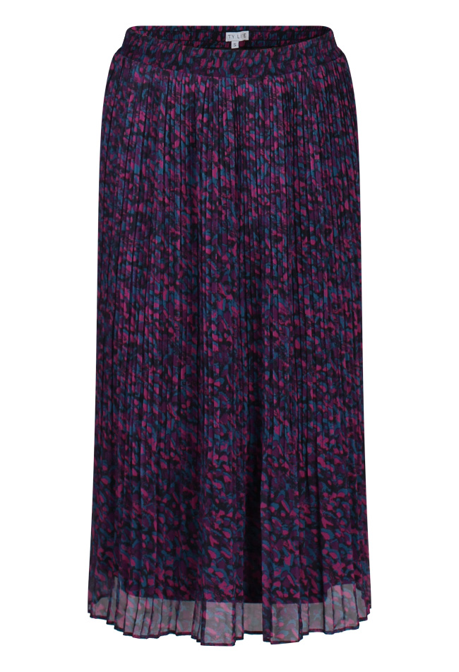 Deze middellange plissé rok heeft een onderrok. De bovenrok is van chiffon. Deze rok heeft elastiek in de taille.