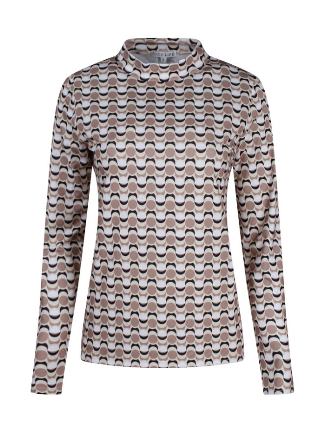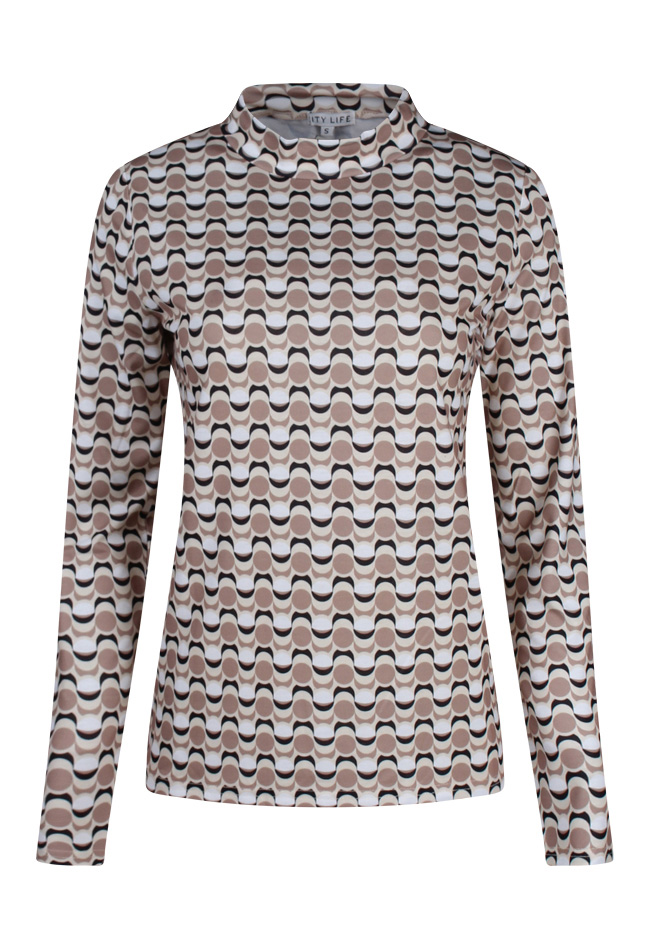 Top met lange mouwen en een turtle neck. Het shirt heeft een allover grafische retro print.