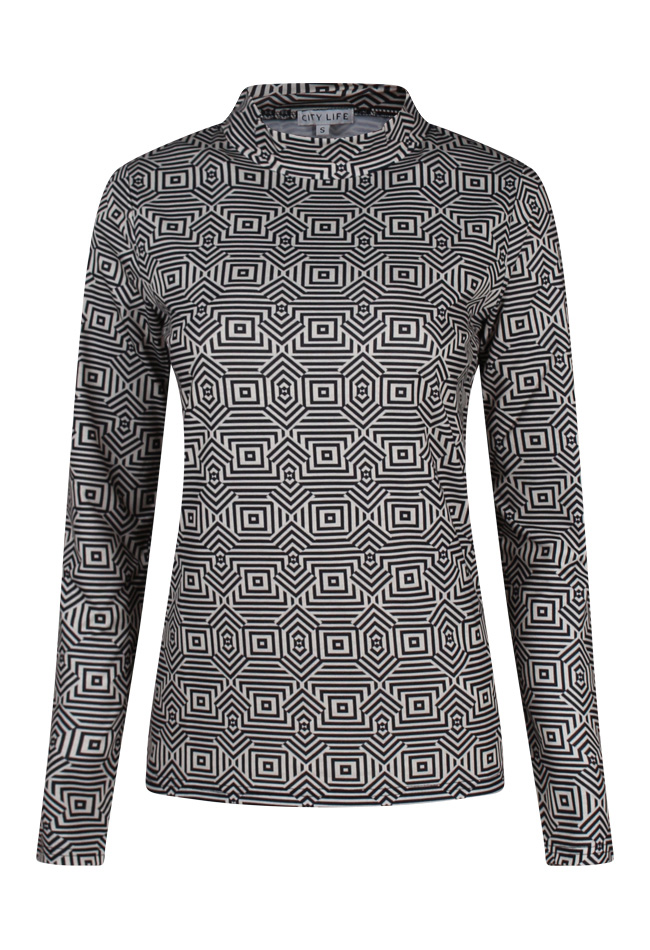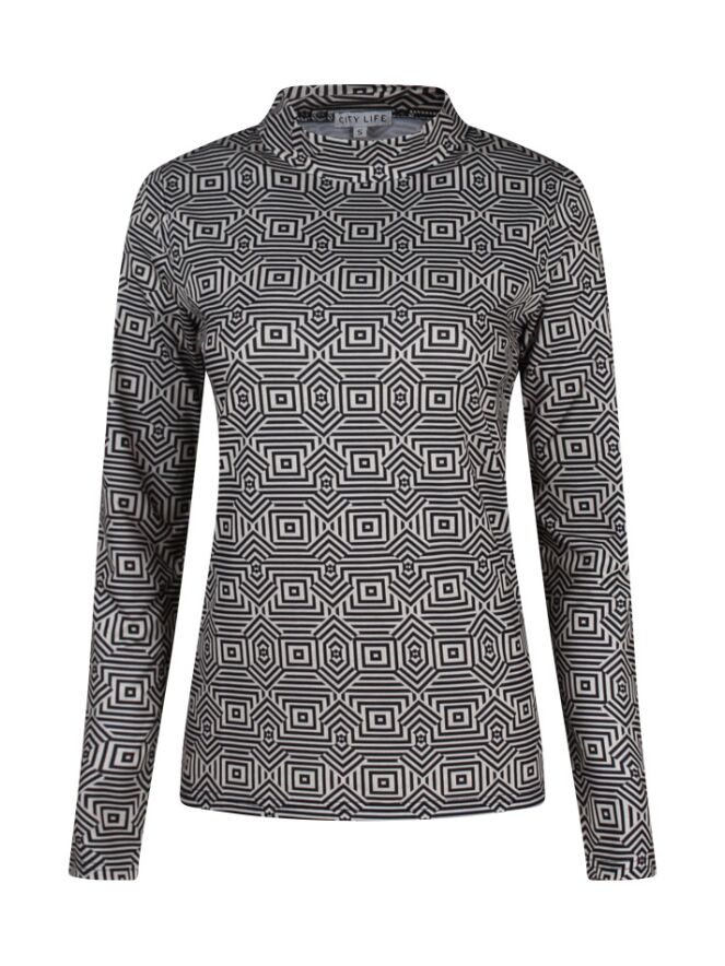 Top met lange mouwen en een turtle neck. Het shirt heeft een allover grafische retro print.