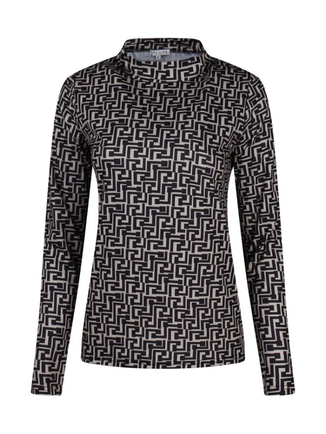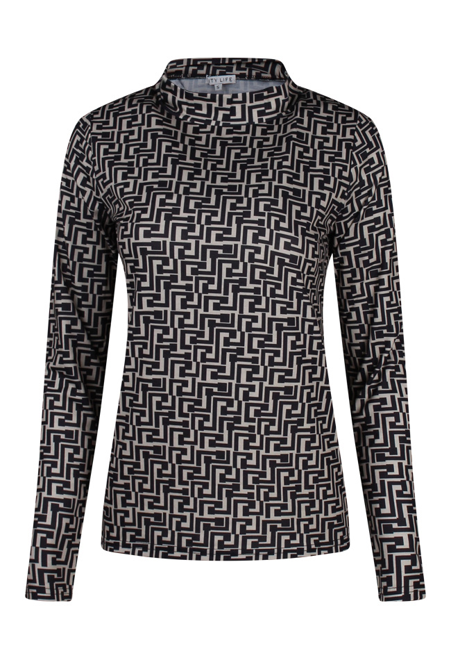 Top met lange mouwen en een turtle neck. Het shirt heeft een allover grafische retro print.