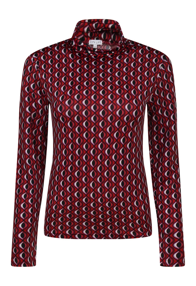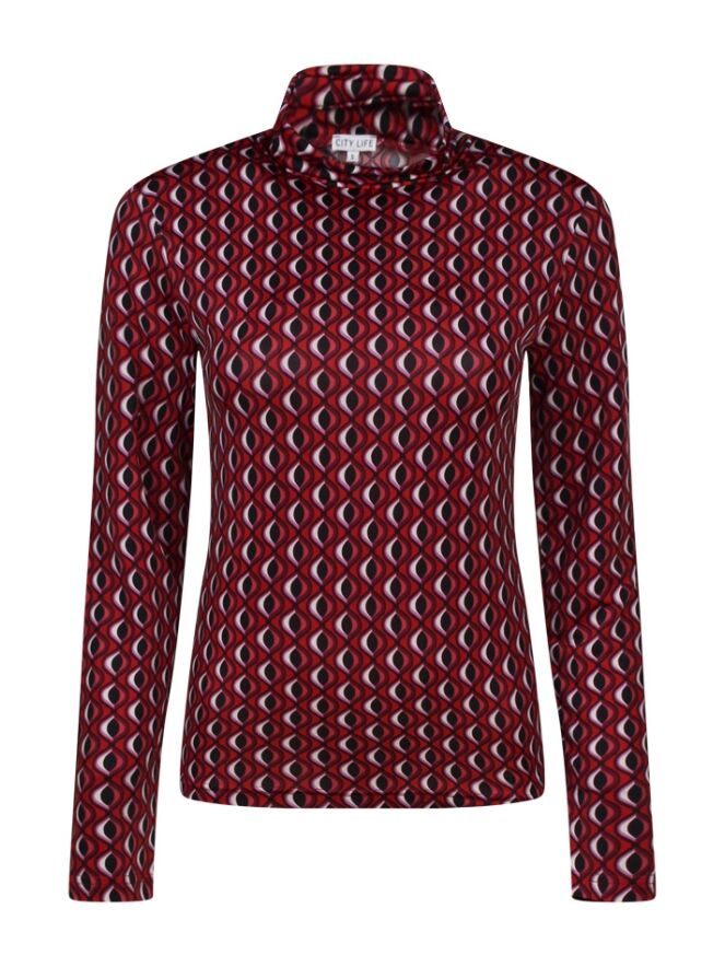 Deze dunne koltrui heeft een allover retro design. Door de 5% elastaan is hij stretchy.