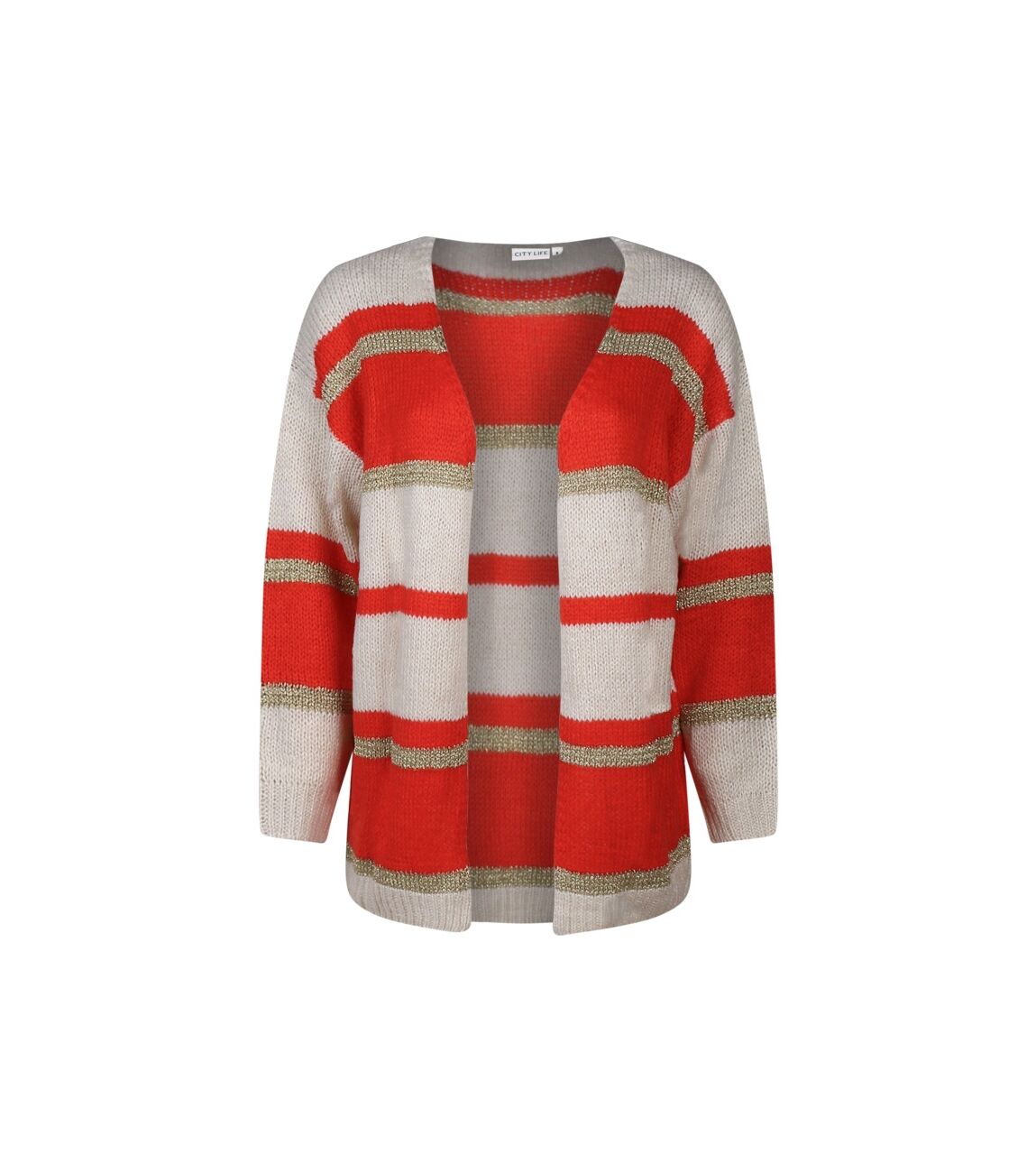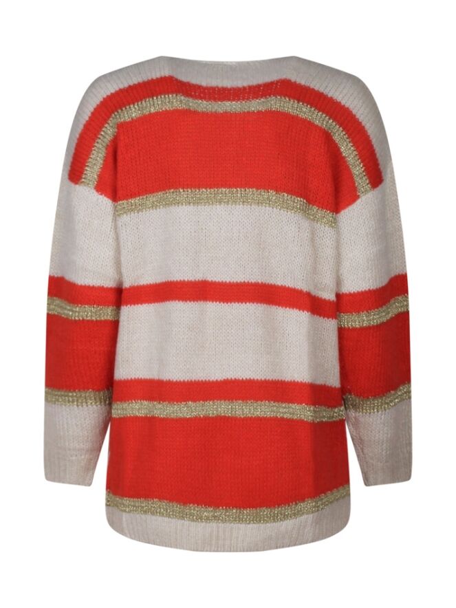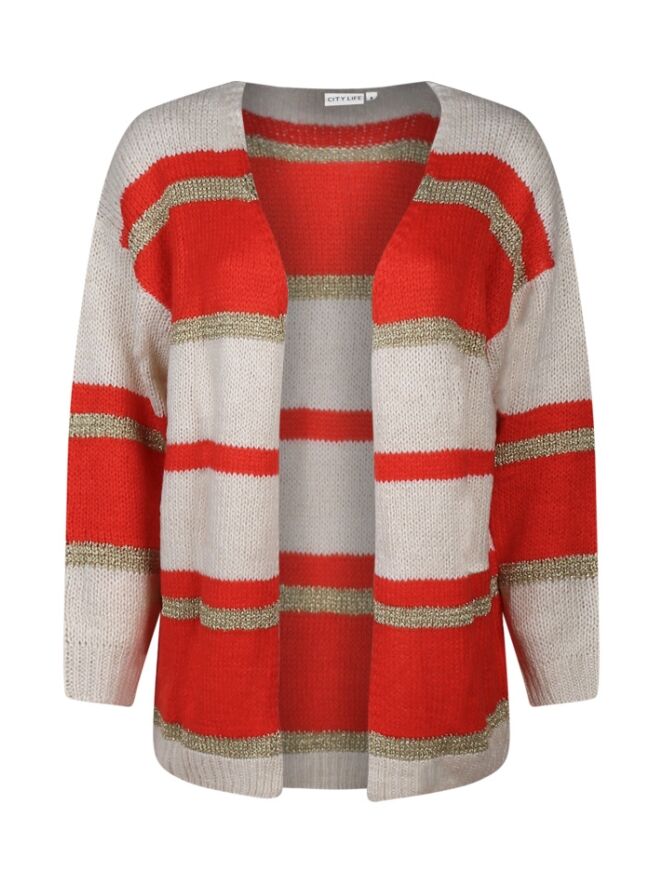 Dit damesvest heeft een opvallend streep patroon.
